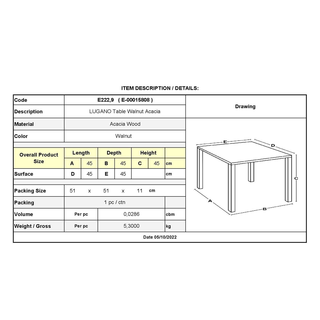 Ε222,9 LUGANO Τραπεζάκι 45x45cm Acacia