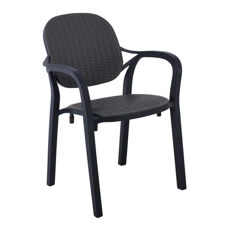 LUNA Πολυθρόνα Κήπου – Βεράντας Στοιβαζόμενη ,PP Απόχρωση Ανθρακί (Rattan Look) (Ε-00023886)