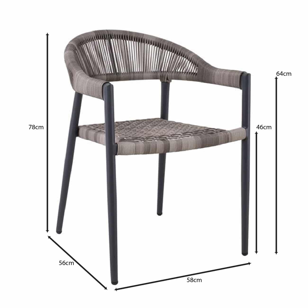 MADISON Πολυθρόνα Βεράντας- Κήπου, ALU Ανθρακί, Rope Wicker Γκρι, Στοιβαζόμενη 58x56x78cm