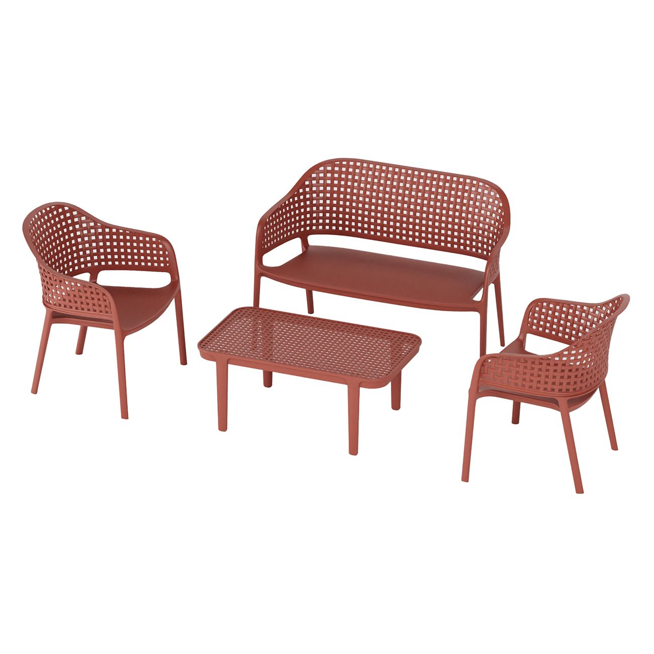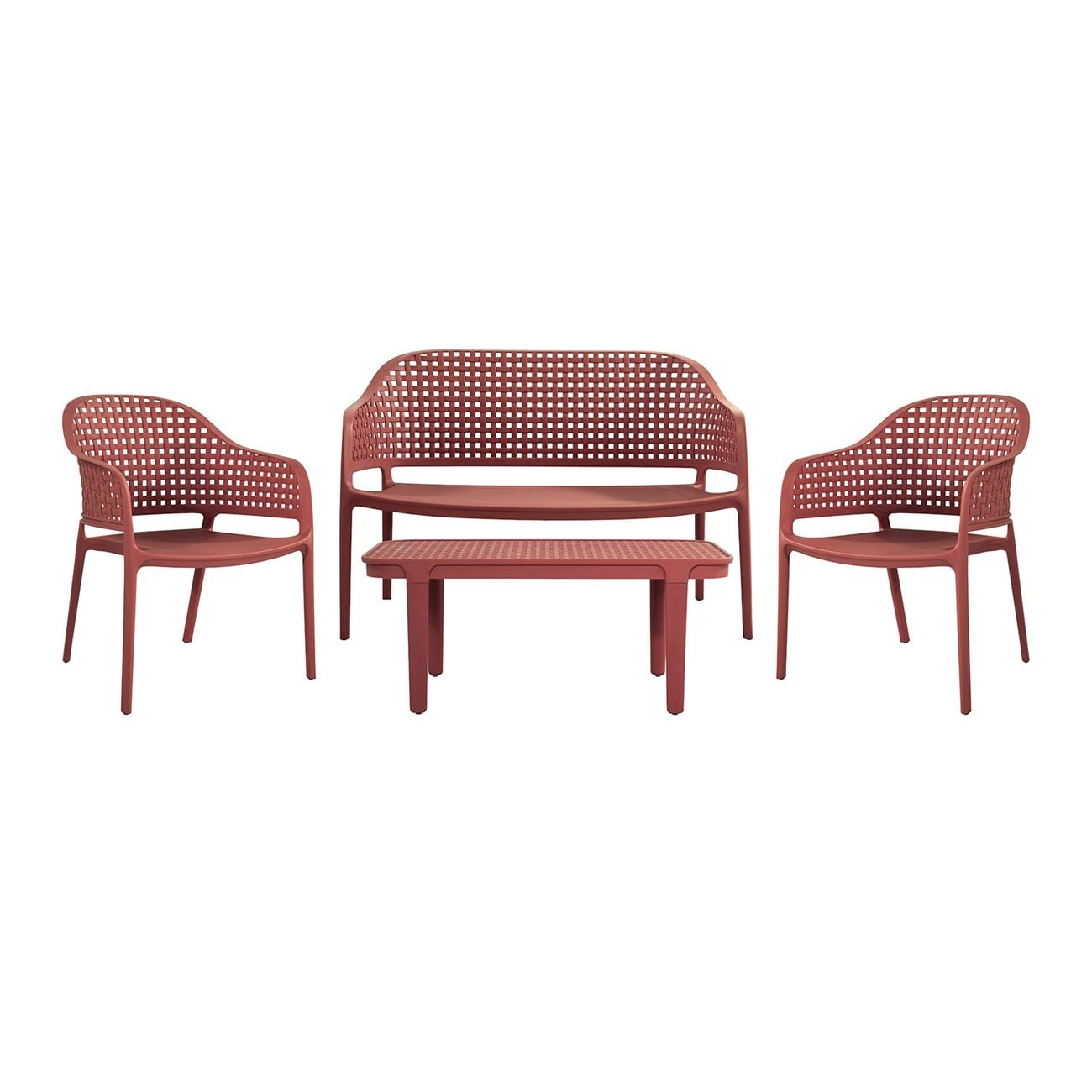 MALAGA Set Σαλόνι Κήπου PP-UV Bordeaux: Καναπές + 2 Πολυθρόνες + Τραπεζάκι Τραπεζάκι+Καναπέ+2 Πολυθρόνες