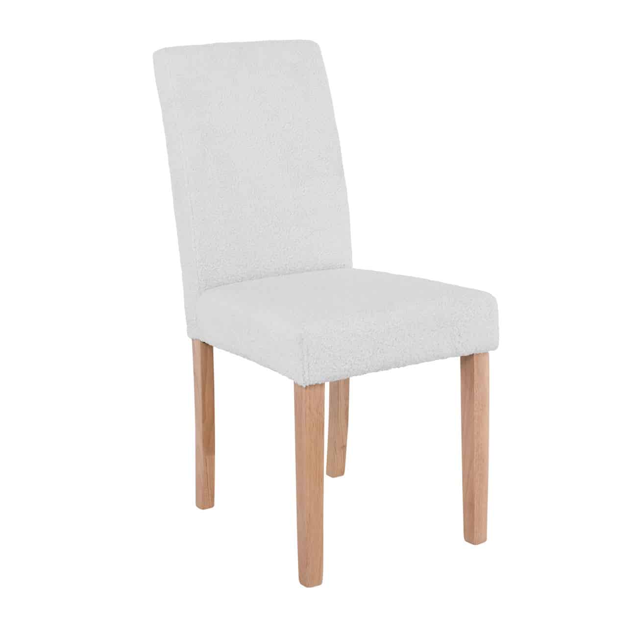 MALEVA-L Καρέκλα Τραπεζαρίας, Ύφασμα Teddy Άσπρο – Φυσικό 44x58x93cm