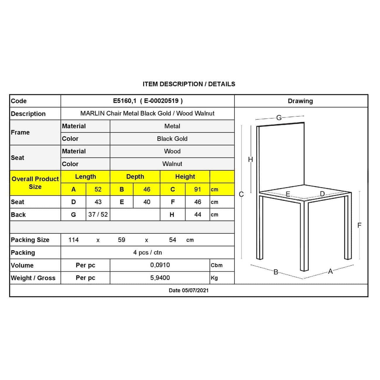 MARLIN Wood Καρέκλα, Μέταλλο Βαφή Black Gold (Ε-00020519)