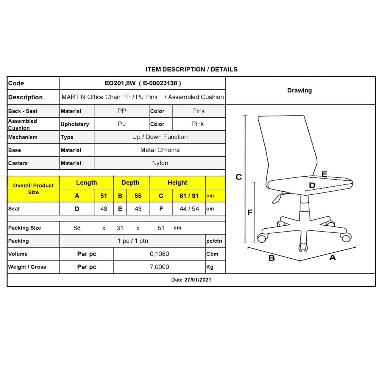 ΕΟ201,8W MARTIN Γραφείου Καρ.PP/Pu Ροζ (Μοντ/νη ταπετσαρία)