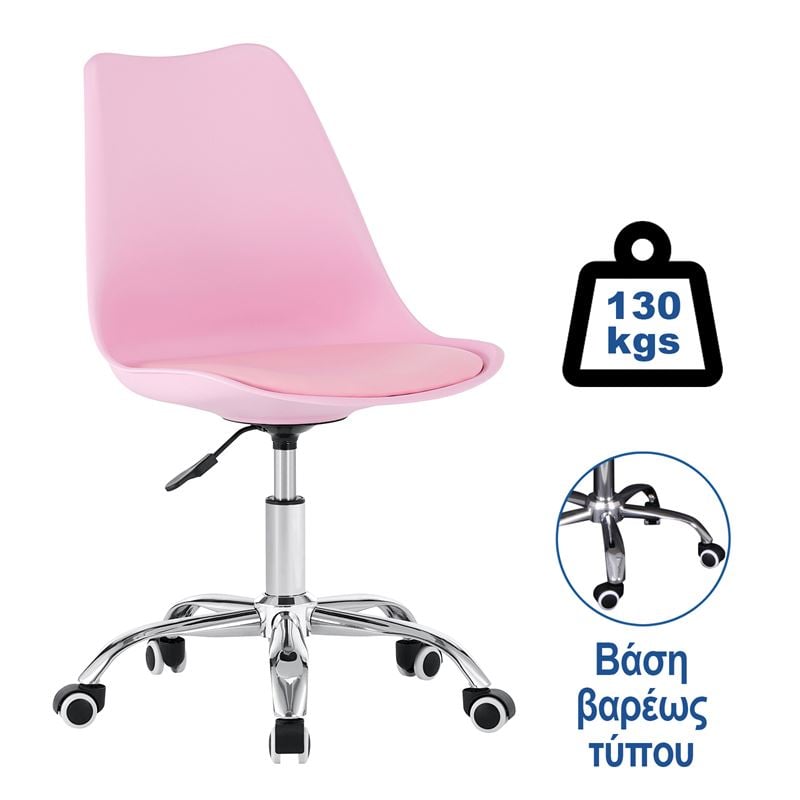 MARTIN Καρέκλα Γραφείου, Βάση Χρώμιο Βαρέως Τύπου, PP & Pu Ροζ, Μονταρισμένη Ταπετσαρία 51x55x78/88cm
