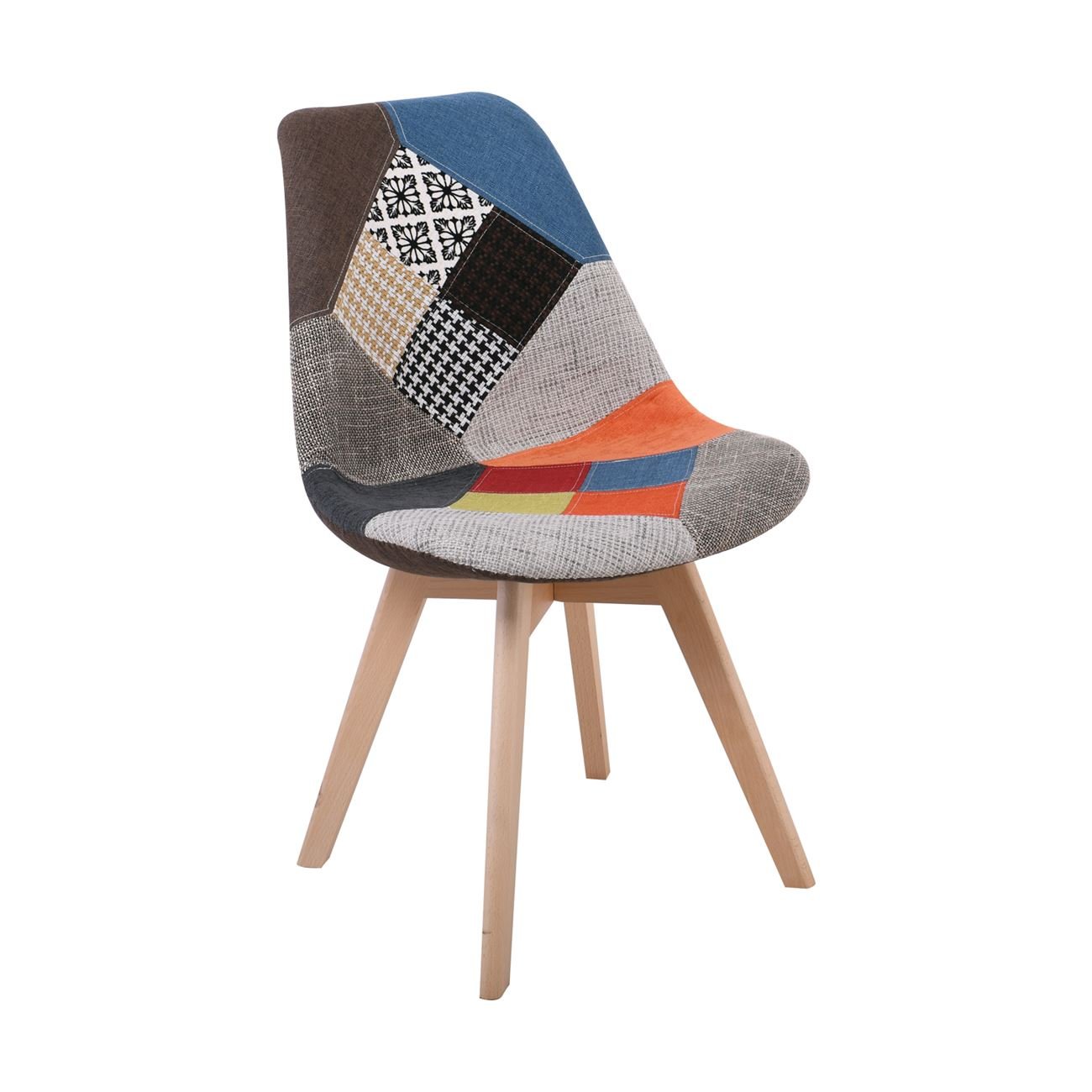 MARTIN Καρέκλα Ξύλο PP, Ύφασμα Patchwork 49x57x82cm