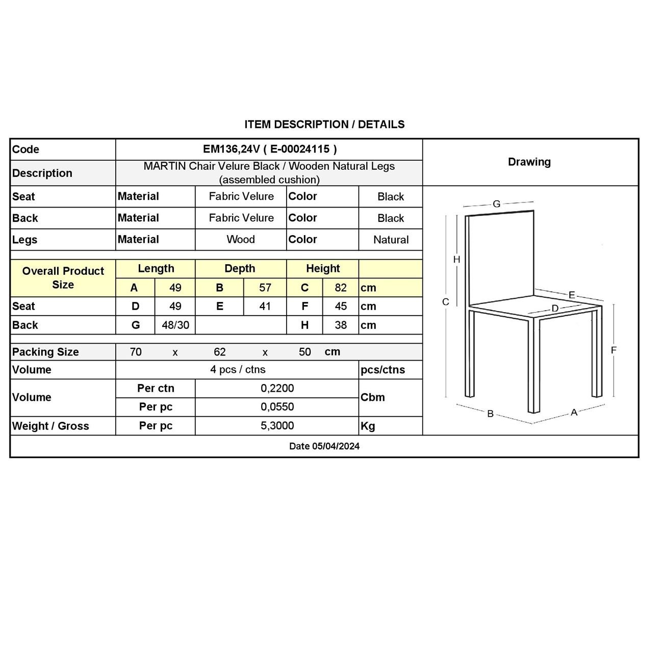 ΕΜ136,24V MARTIN Καρ.Velure Μαύρο (Ξύλινο πόδι-Μονταρισμένη Ταπετσαρία)
