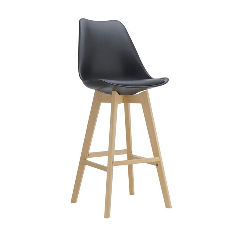 MARTIN Σκαμπό BAR Οξιά Φυσικό, PP-Pu Μαύρο, Μονταρισμένη Ταπετσαρία (Ε-00019487)