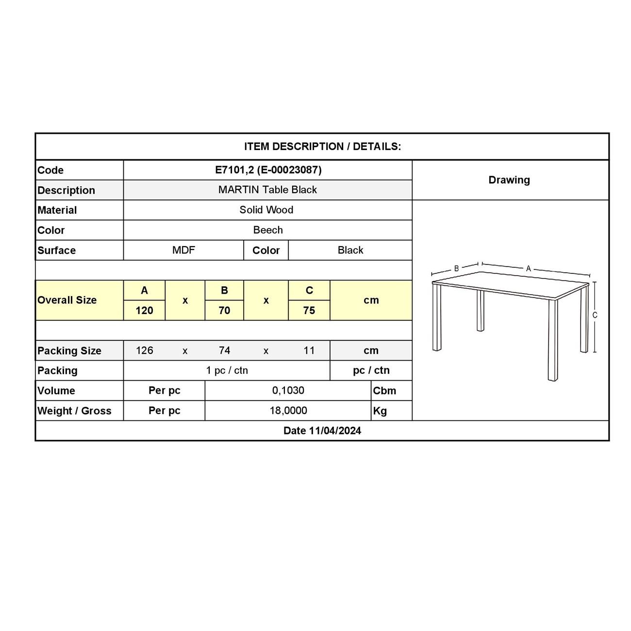 MARTIN Τραπέζι Κουζίνας – Εστιατορίου, Οξιά Φυσικό, MDF Μαύρο 120×70 H.75cm