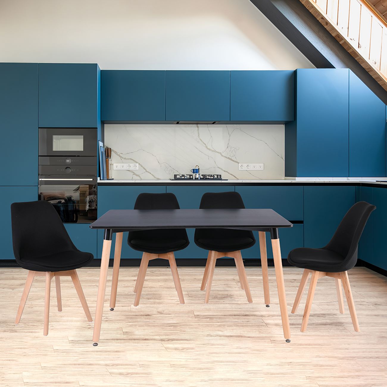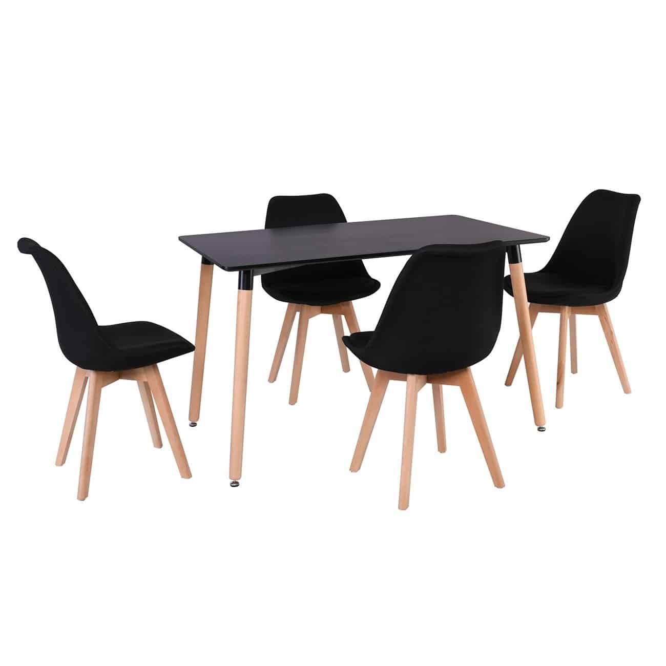MARTIN Set Τραπεζαρία: Τραπέζι + 4 Καρέκλες, MDF Μαύρο – Οξιά Φυσικό, Ύφασμα Μαύρο Table:120x80x73 Chair:49x57x82