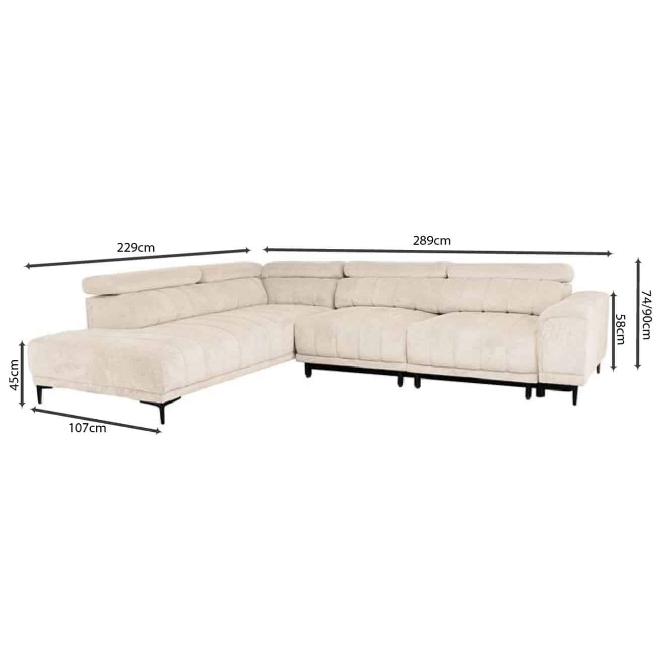 MASSIMO Καναπές Δεξιά Γωνία Ηλεκτρικά Συρόμενα Καθίσματα, Ύφασμα Water Repellent Μπεζ 289x229x107cm H.74/90cm