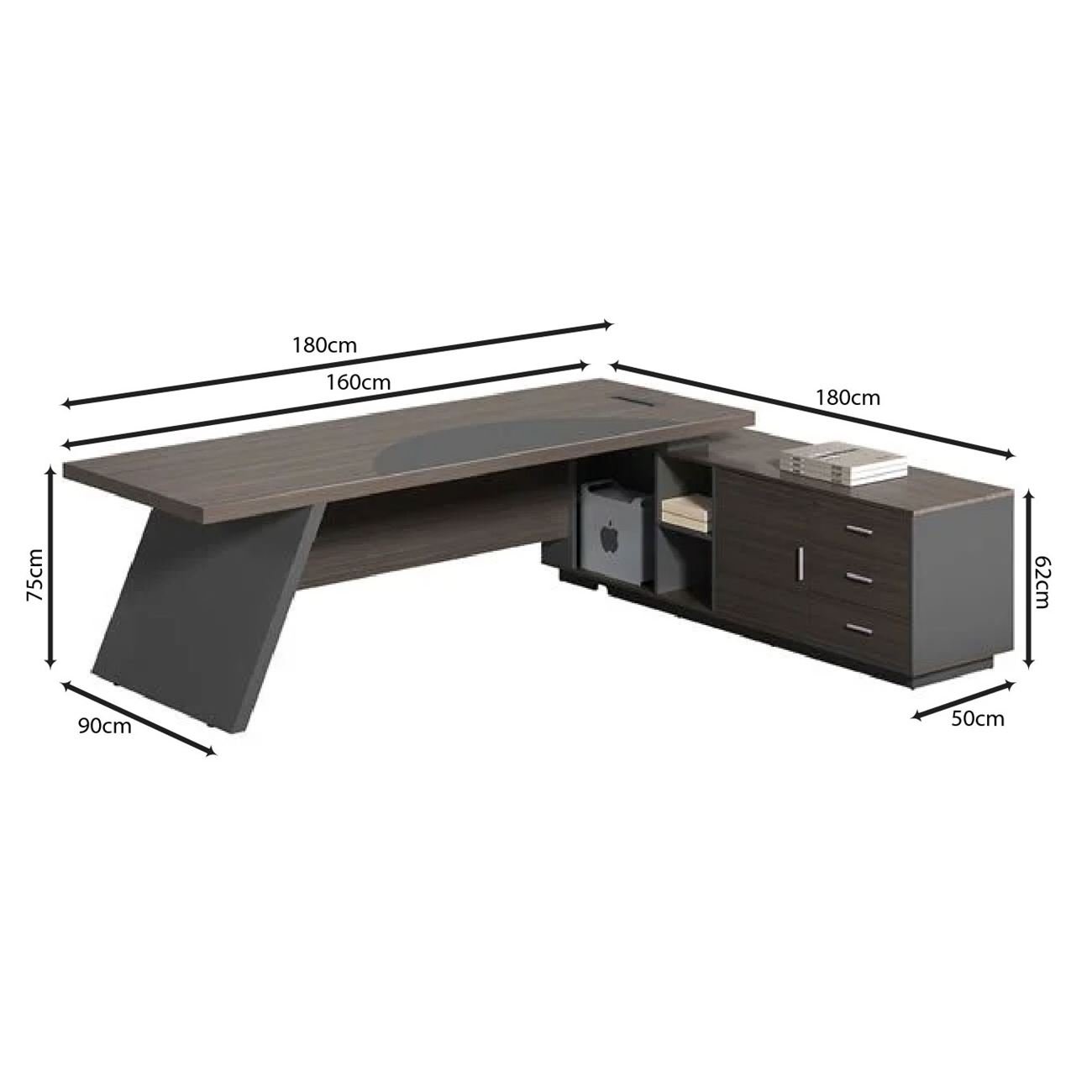 MASTER Γραφείο Δεξιά Γωνία, Απόχρωση Grey Walnut 180x90x75/180x50x62cm