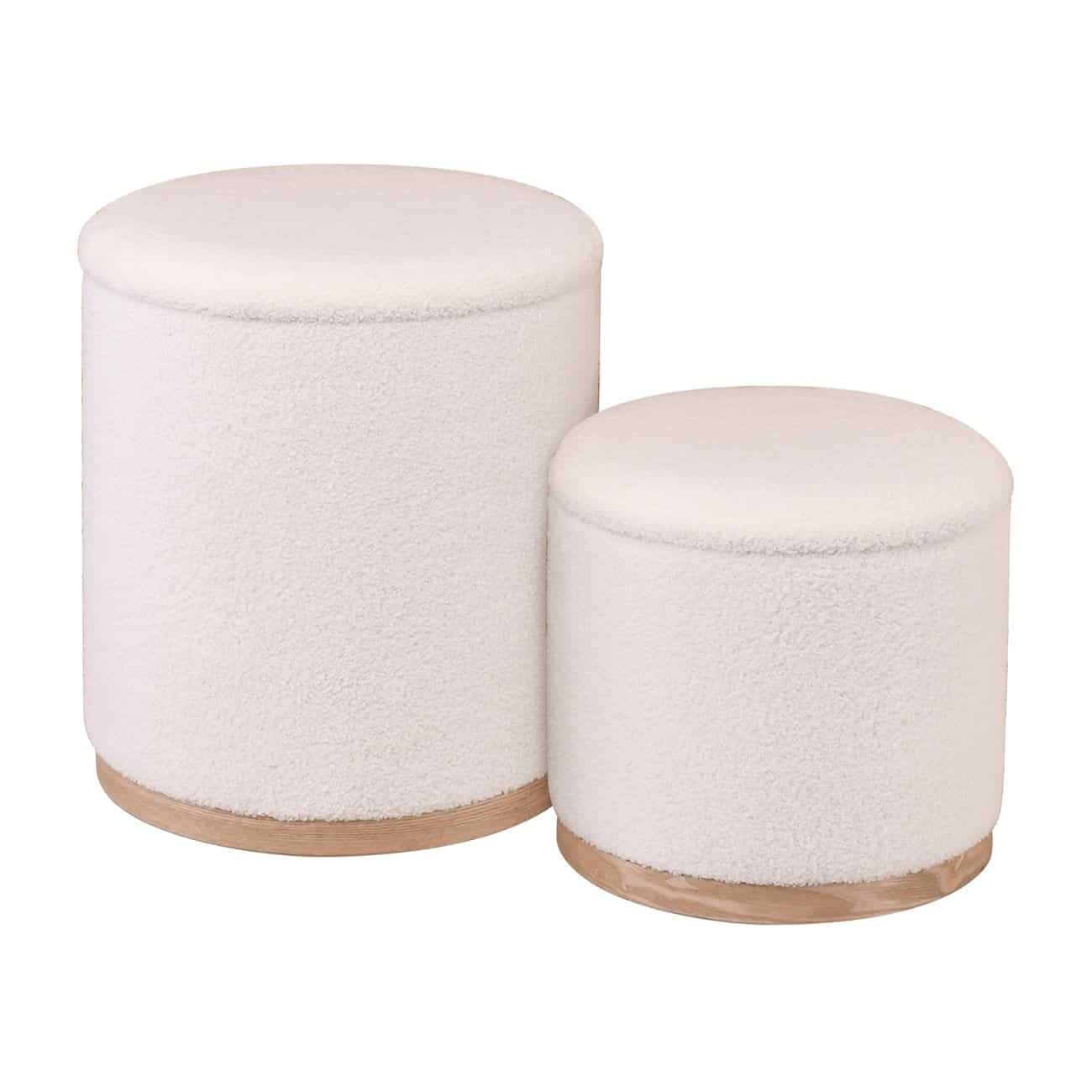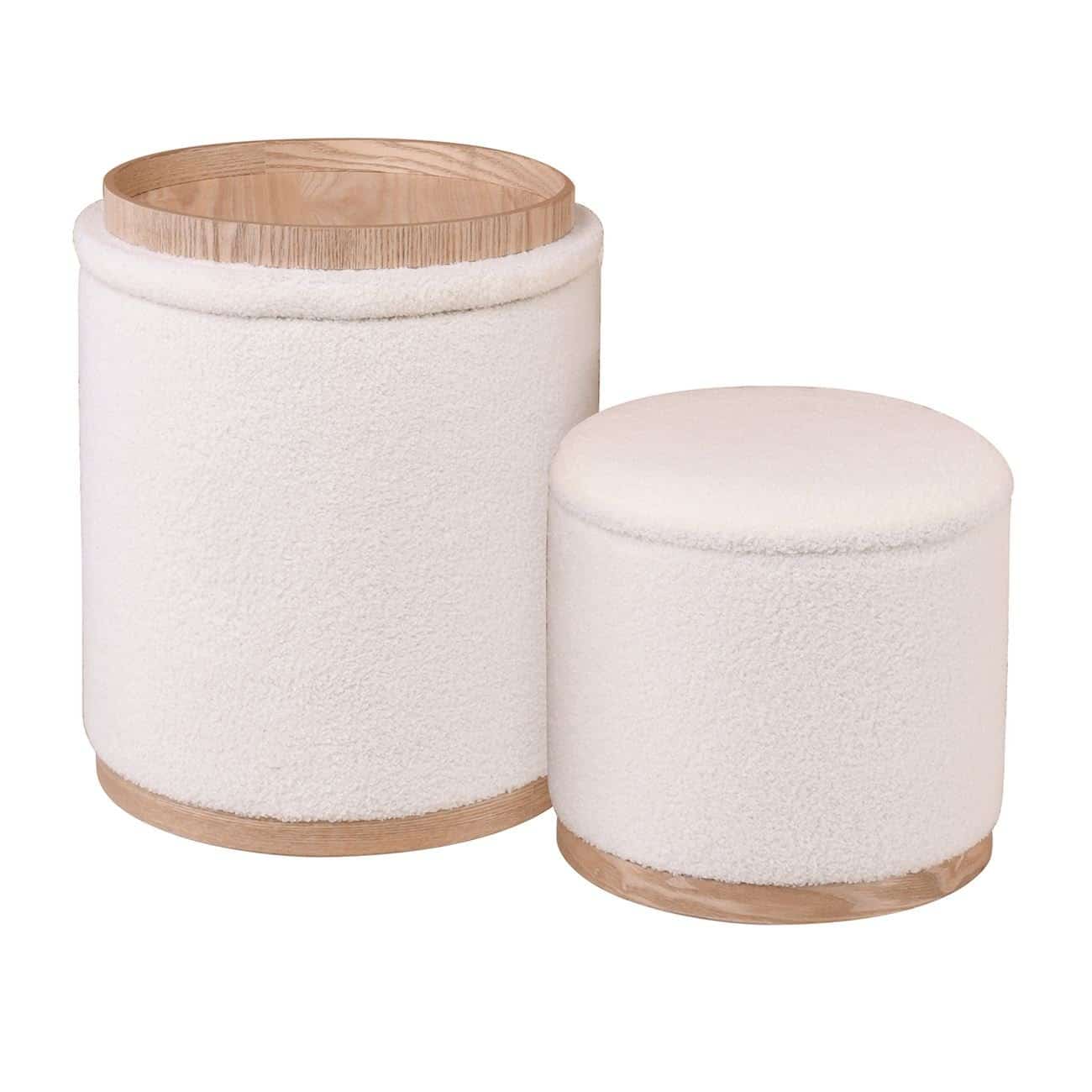 MATIC Set-2 Σκαμπό-Τραπεζάκι με Αποθηκευτικό Χώρο, Teddy Ύφασμα Εκρού Φ38cm H.45cm + Φ34cm H.32cm
