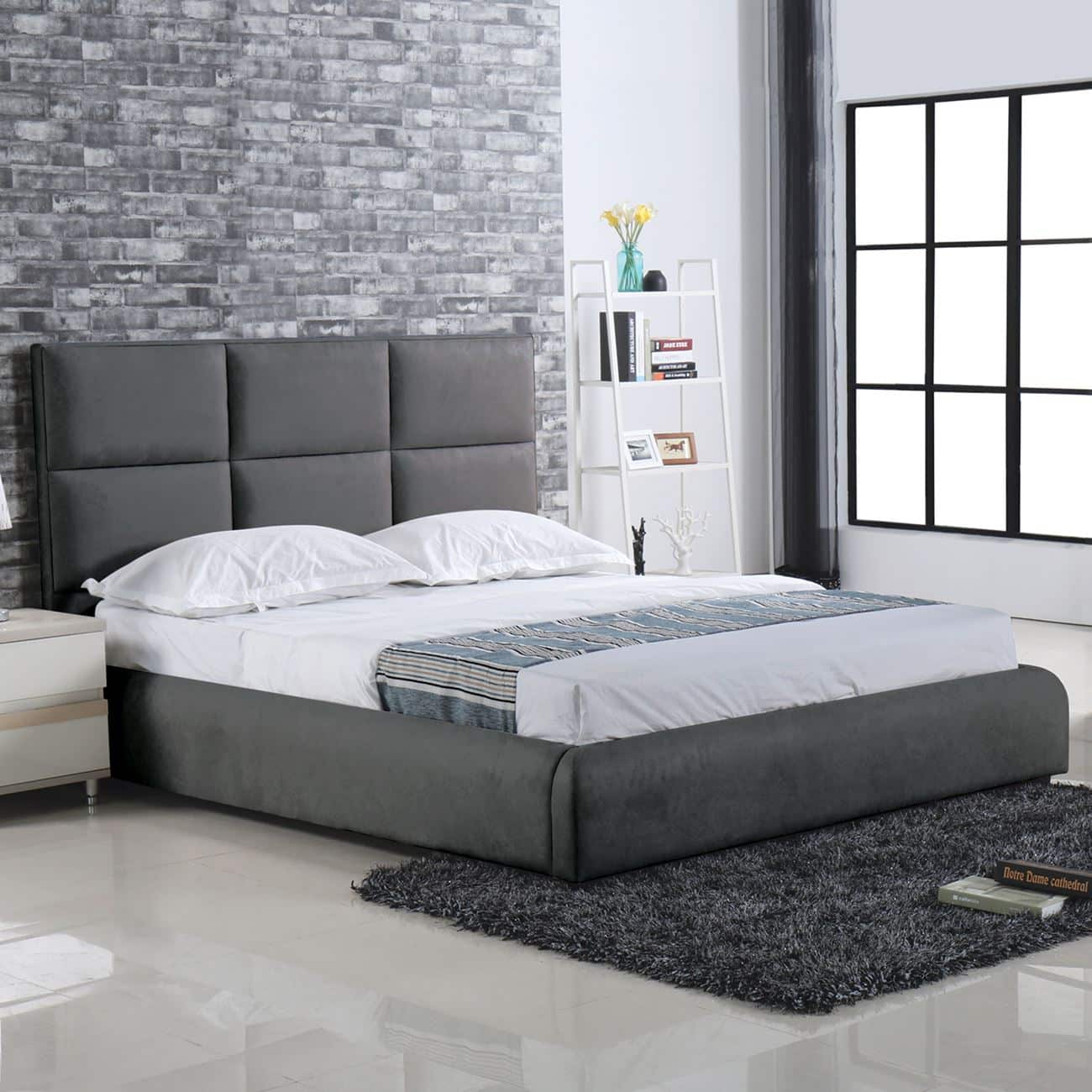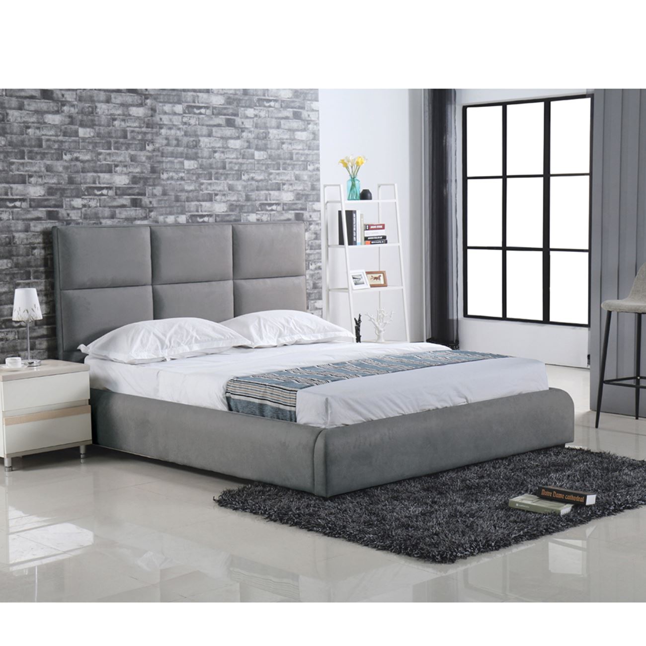 MAXIM Κρεβάτι Διπλό, για Στρώμα 160x200cm, Ύφασμα Σκούρο Γκρι 183x220x121cm