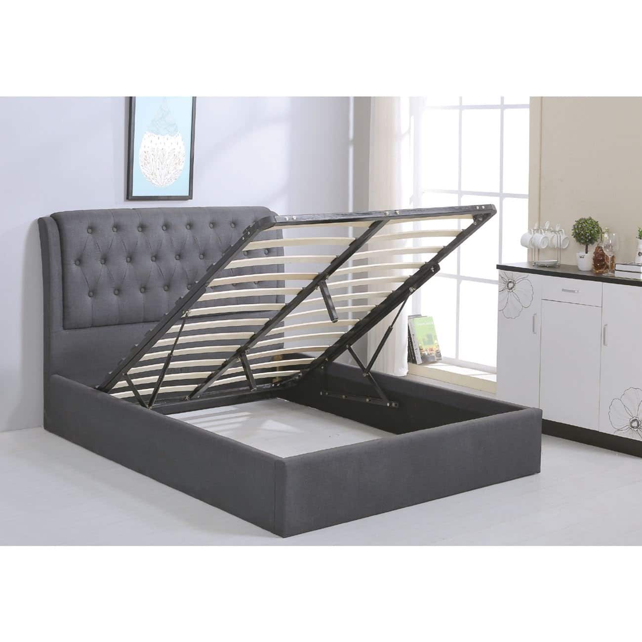 MAXWELL Κρεβάτι Διπλό με Αποθηκευτικό Χώρο, για Στρώμα 160x200cm, Ύφασμα Γκρι 166x221x104cm