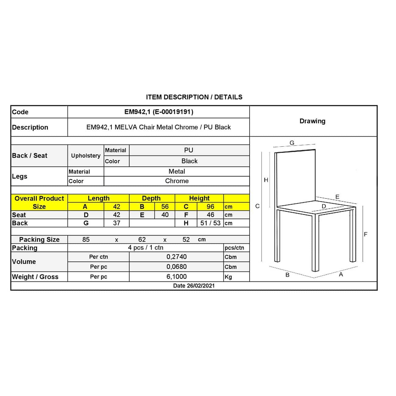 ΕΜ942,1 MELVA Καρέκλα Χρώμιο/Pu Μαύρο