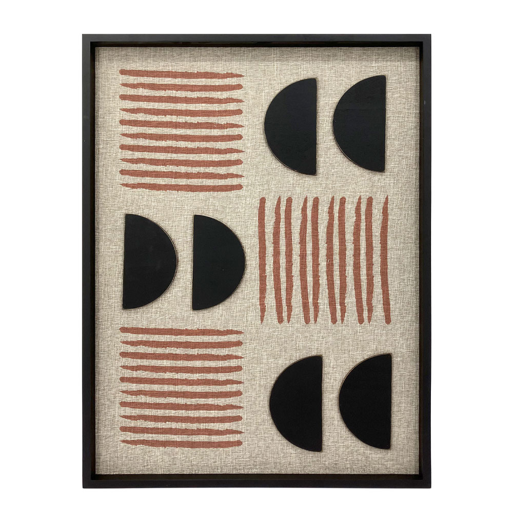 Στο έργο Miles of Smiles οι ελεύθερες γραμμές και τα γεωμετρικά ημικύκλια φαίνεται να χορεύουν πάνω στον καμβά, μεταδίδοντας μια αίσθηση ευθυμίας και θετικής ενέργειας. Τα ημικύκλια, με τις καμπύλες τους, εκλύουν μια χαρούμενη ενέργεια, ενώ η διαρκής κίνηση των γραμμών δημιουργεί την αίσθηση του παιχνιδιού. Η αρμονία των γήινων χρωμάτων συνδυάζεται με την αντίθεση των μαύρου, προσφέροντας μια αίσθηση ευθυμίας και θετικής ενέργειας. Ο πίνακας Miles of Smiles θα προσδώσει στους χώρους του σπιτιού ή του γραφείου μια αίσθησης ζωντάνιας με σύγχρονο στυλ.