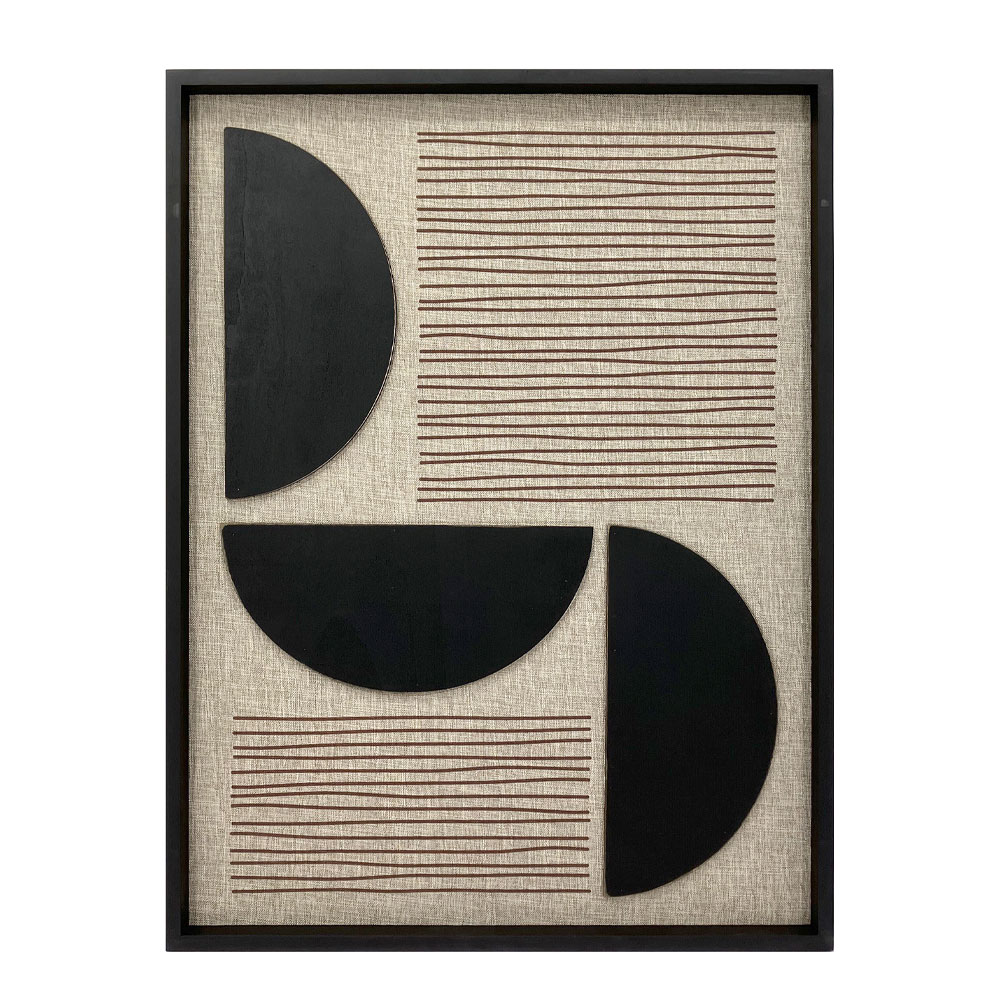 Στο έργο Miles of Smiles οι ελεύθερες γραμμές και τα γεωμετρικά ημικύκλια φαίνεται να χορεύουν πάνω στον καμβά, μεταδίδοντας μια αίσθηση ευθυμίας και θετικής ενέργειας. Τα ημικύκλια, με τις καμπύλες τους, εκλύουν μια χαρούμενη ενέργεια, ενώ η διαρκής κίνηση των γραμμών δημιουργεί την αίσθηση του παιχνιδιού. Η αρμονία των γήινων χρωμάτων συνδυάζεται με την αντίθεση των μαύρου, προσφέροντας μια αίσθηση ευθυμίας και θετικής ενέργειας. Ο πίνακας Miles of Smiles θα προσδώσει στους χώρους του σπιτιού ή του γραφείου μια αίσθησης ζωντάνιας με σύγχρονο στυλ.