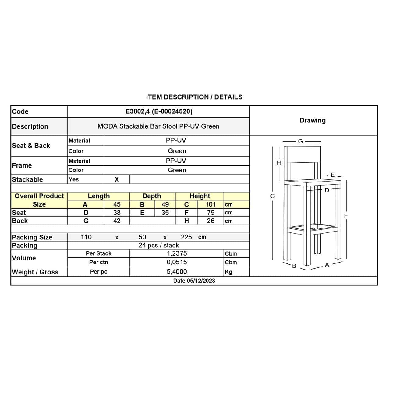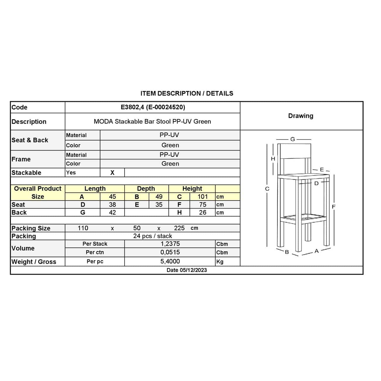 Ε3802,4 MODA Σκαμπό Bar-Pro PP-UV Πράσινο