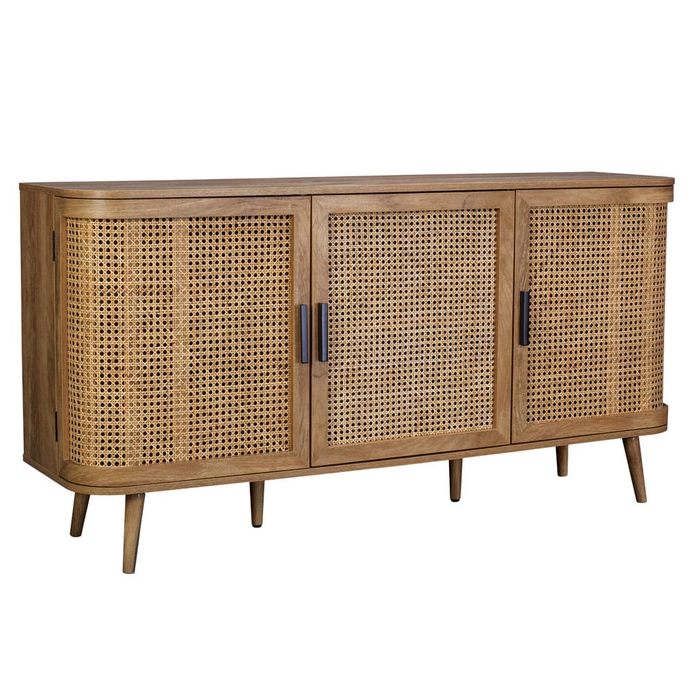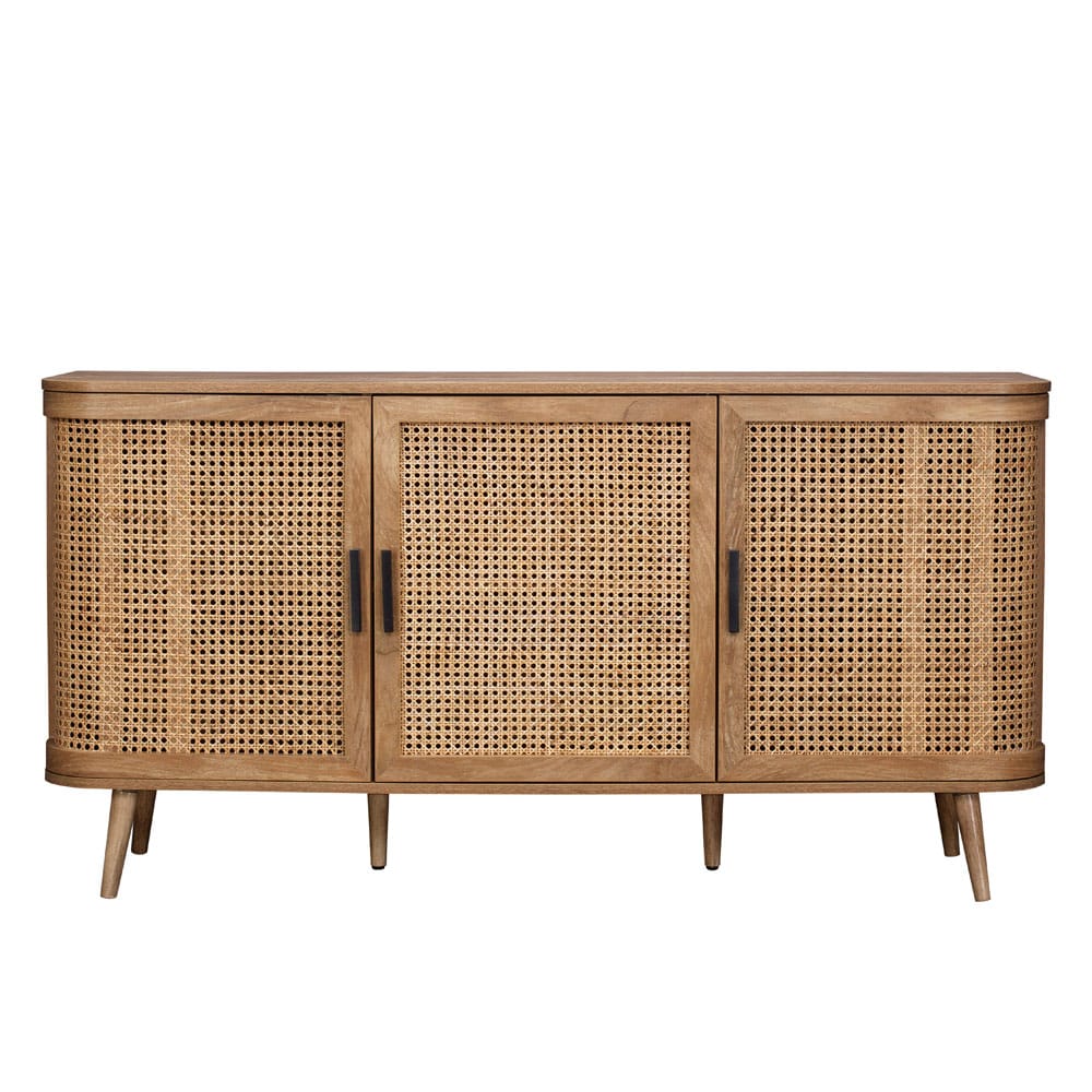 Ο μπουφές Monmarte αποπνέει μια αίσθηση διαχρονικής κομψότητας και φυσικής γοητείας, ιδανικός για όσους αναζητούν έναν μοναδικό συνδυασμό στυλ και λειτουργικότητας. Με επένδυση από paper wood σε φυσική απόχρωση, προσφέρει ζεστασιά και αυθεντικότητα στον χώρο, ενώ οι όψεις των ντουλαπιών από rattan προσθέτουν μια χειροποίητη αίσθηση και εξωτική φινέτσα. Οι καμπύλες λεπτομέρειες στον σχεδιασμό του ενισχύουν την εκλεπτυσμένη αισθητική του. Ο μπουφές Monmarte είναι η τέλεια επιλογή για να αναδείξετε τη διακόσμηση του σαλονιού ή της τραπεζαρίας σας, παρέχοντας παράλληλα άνετο αποθηκευτικό χώρο.