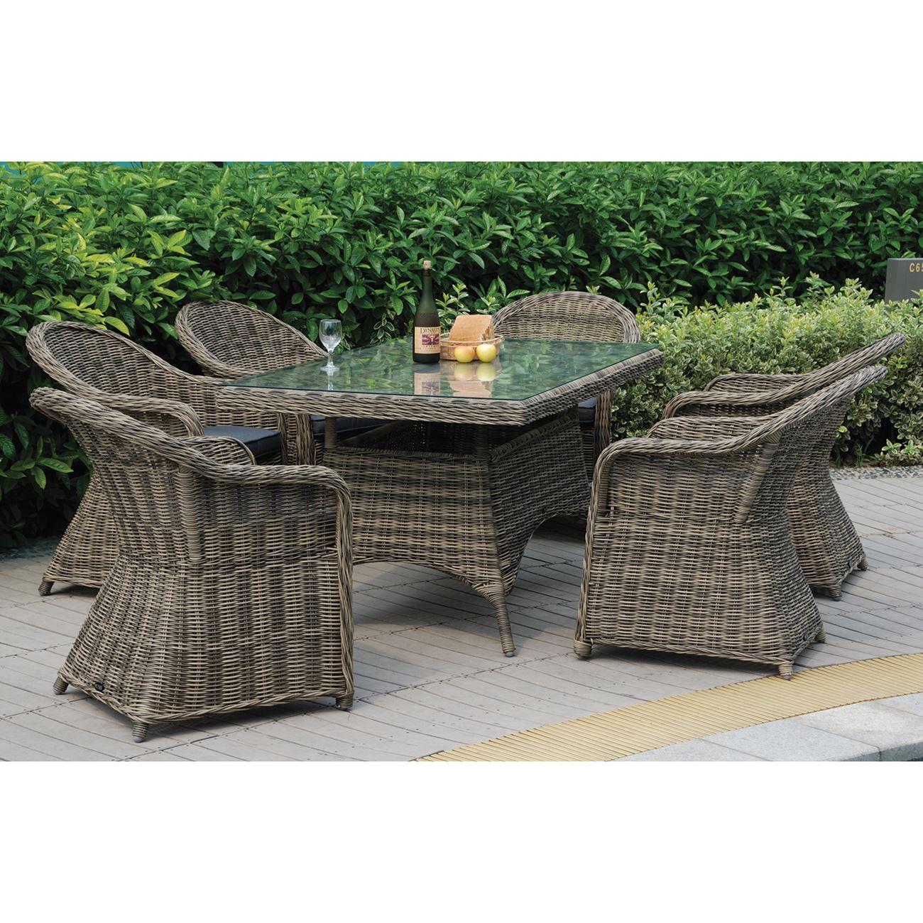 MONTANA Set Τραπεζαρία Κήπου:6 Πολυθρόνες+Τραπέζι, Αλουμίνιο- Wicker Grey Brown με Μαξιλάρια Table:160x90x75 Chair:60x72x85
