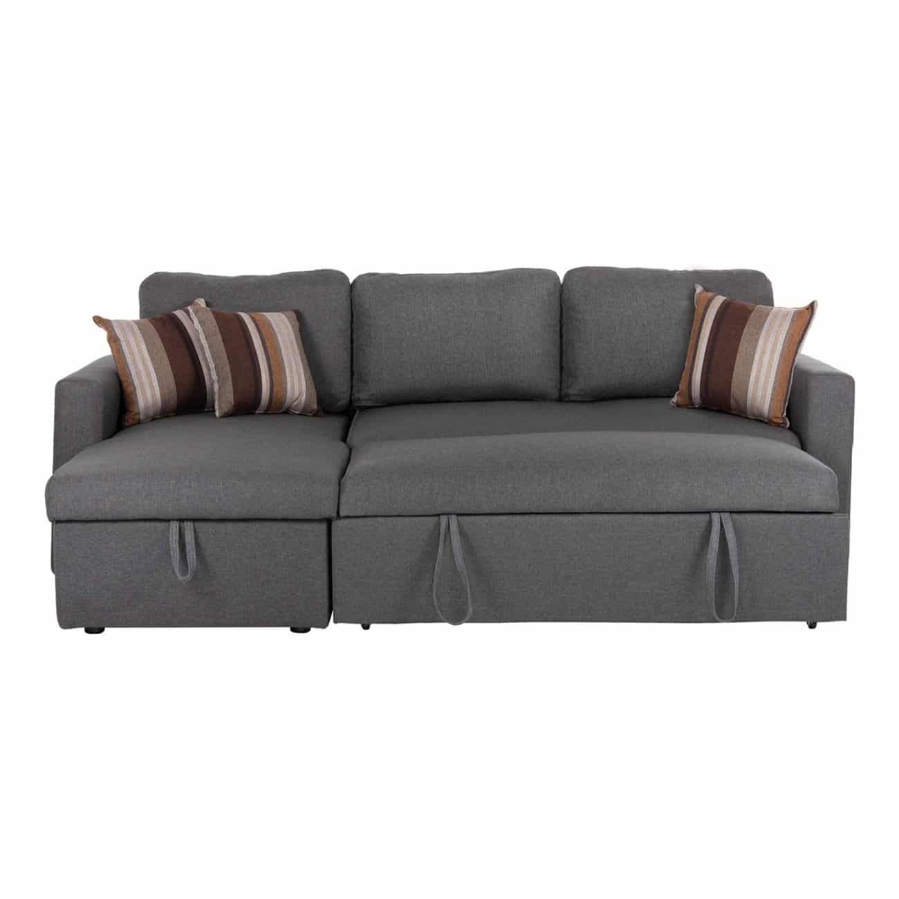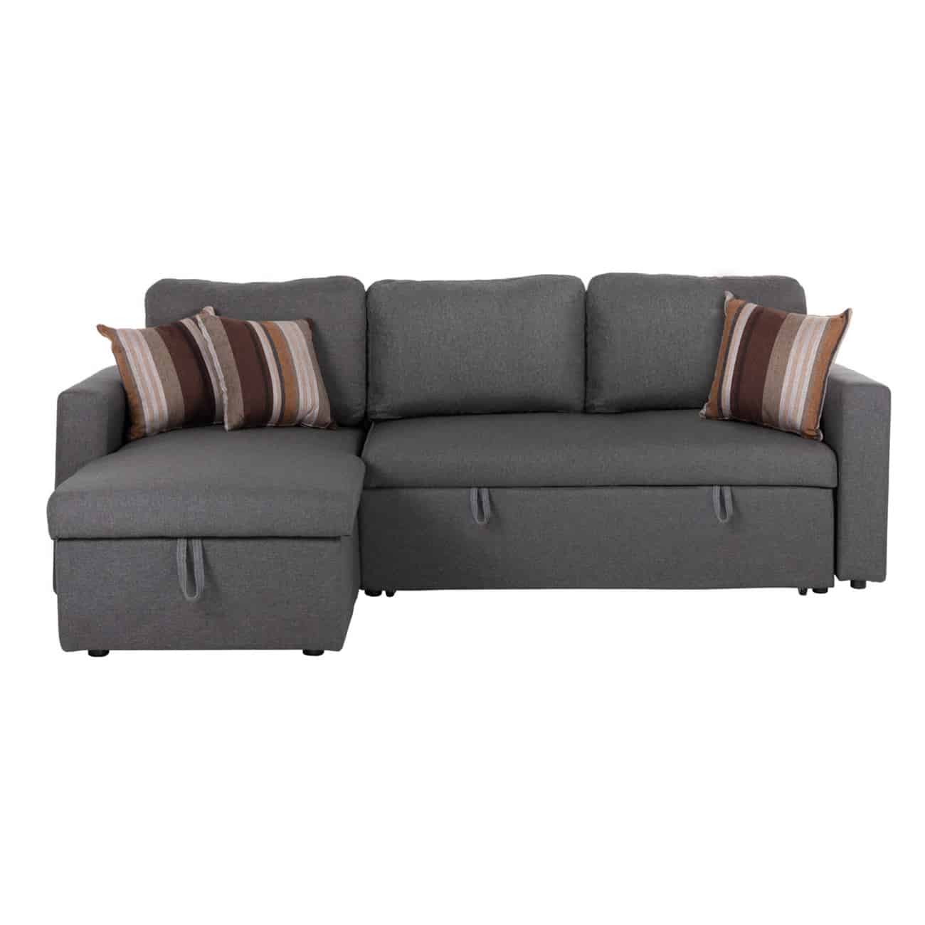 MONTREAL-W Καναπές – Κρεβάτι Γωνία Αναστρέψιμη με Χώρο Αποθήκευσης, Ύφασμα Γκρι 219x144x64x80cm Bed:144x198cm