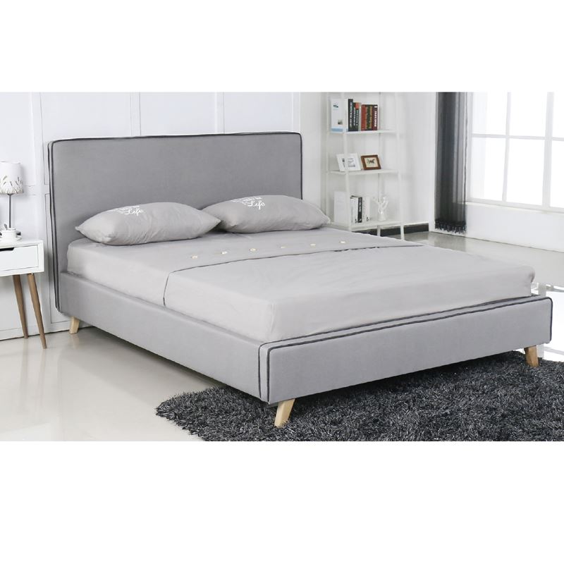 MORISSON Κρεβάτι Διπλό, για Στρώμα 140x190cm, Ύφασμα Ανοιχτό Γκρι 151x206x110cm