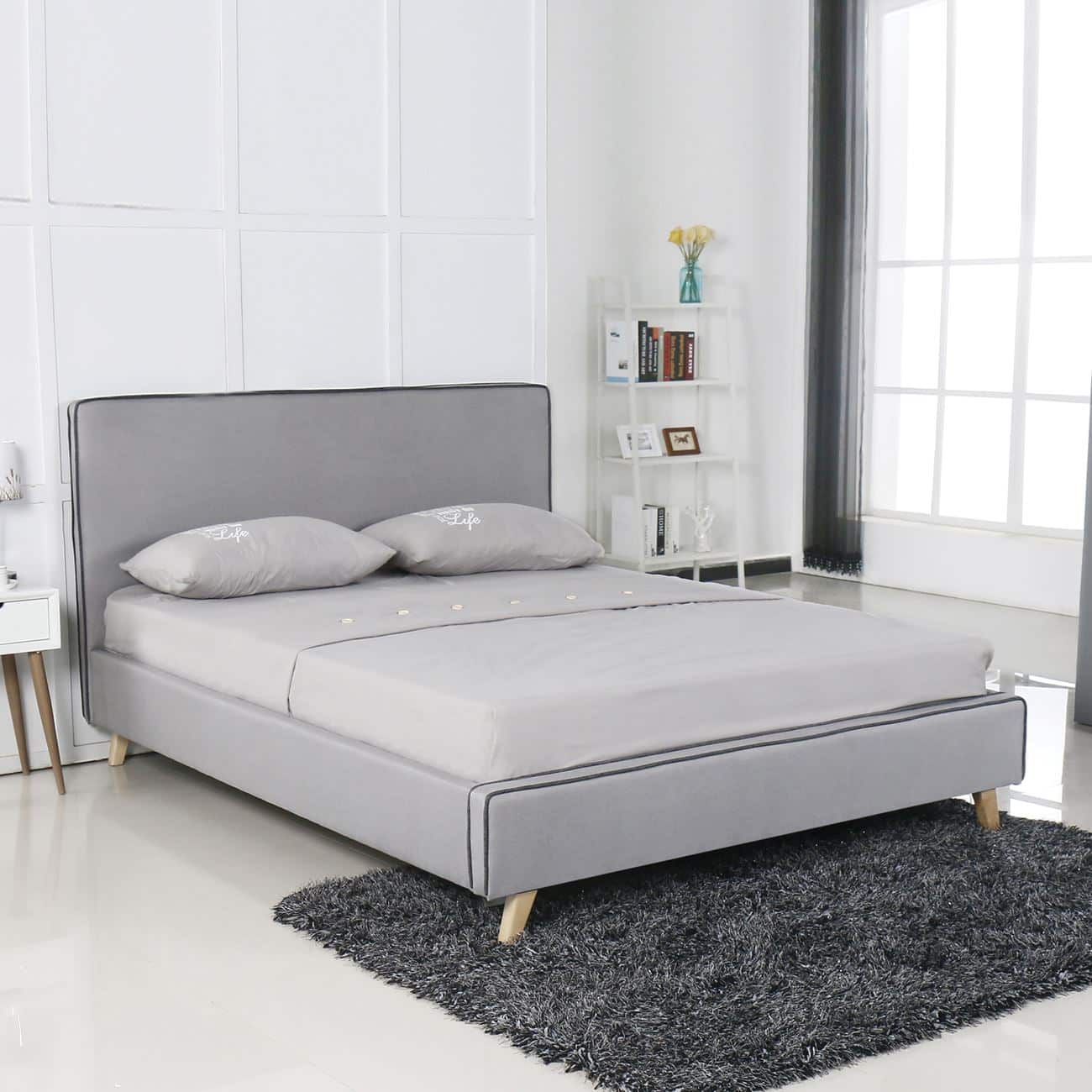 MORISSON Κρεβάτι Διπλό, για Στρώμα 160x200cm, Ύφασμα Ανοιχτό Γκρι (Ε-00018687)