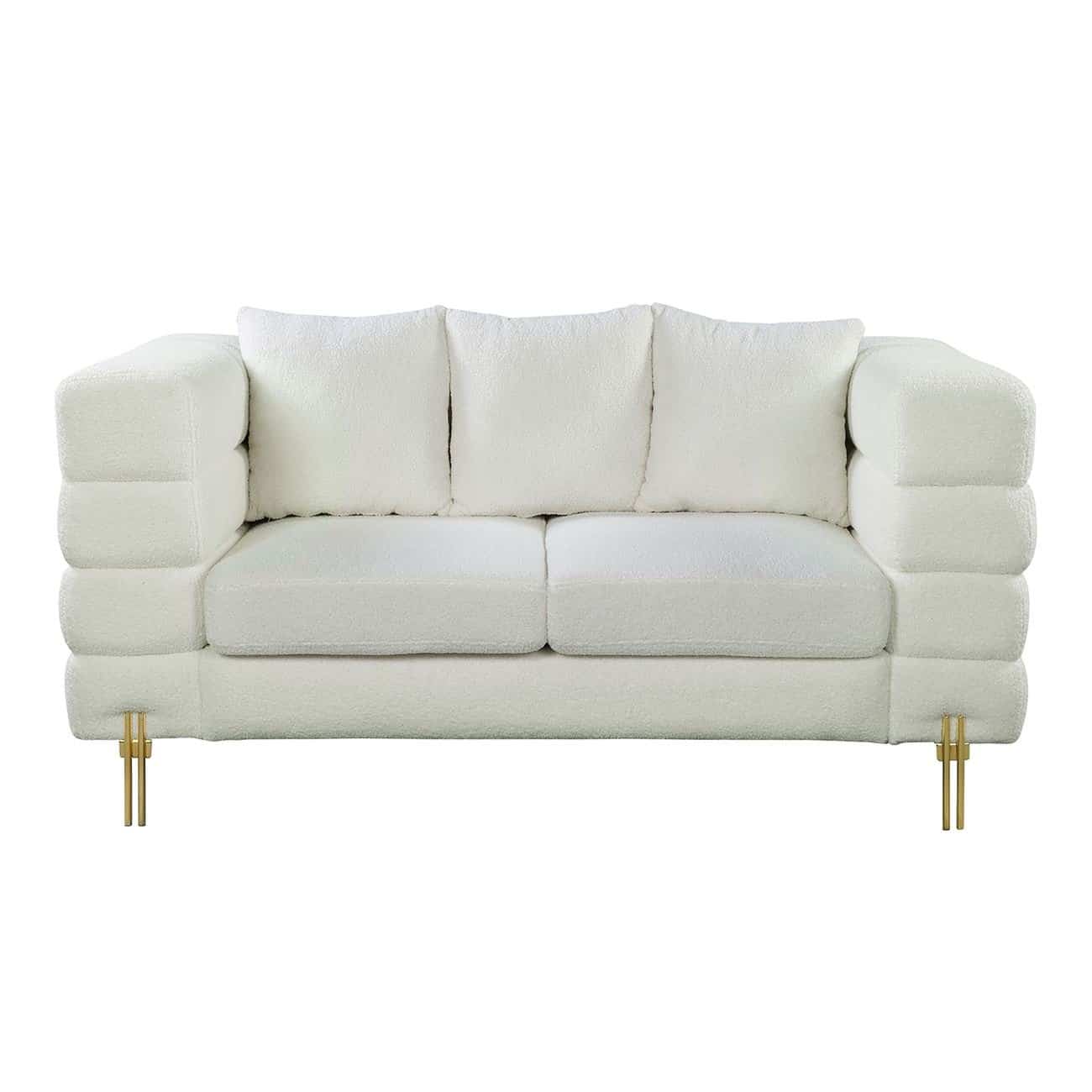 MORRIS Καναπές 2Θέσιος Σαλονιού – Καθιστικού, Ύφασμα Teddy Άσπρο 160x84x76cm