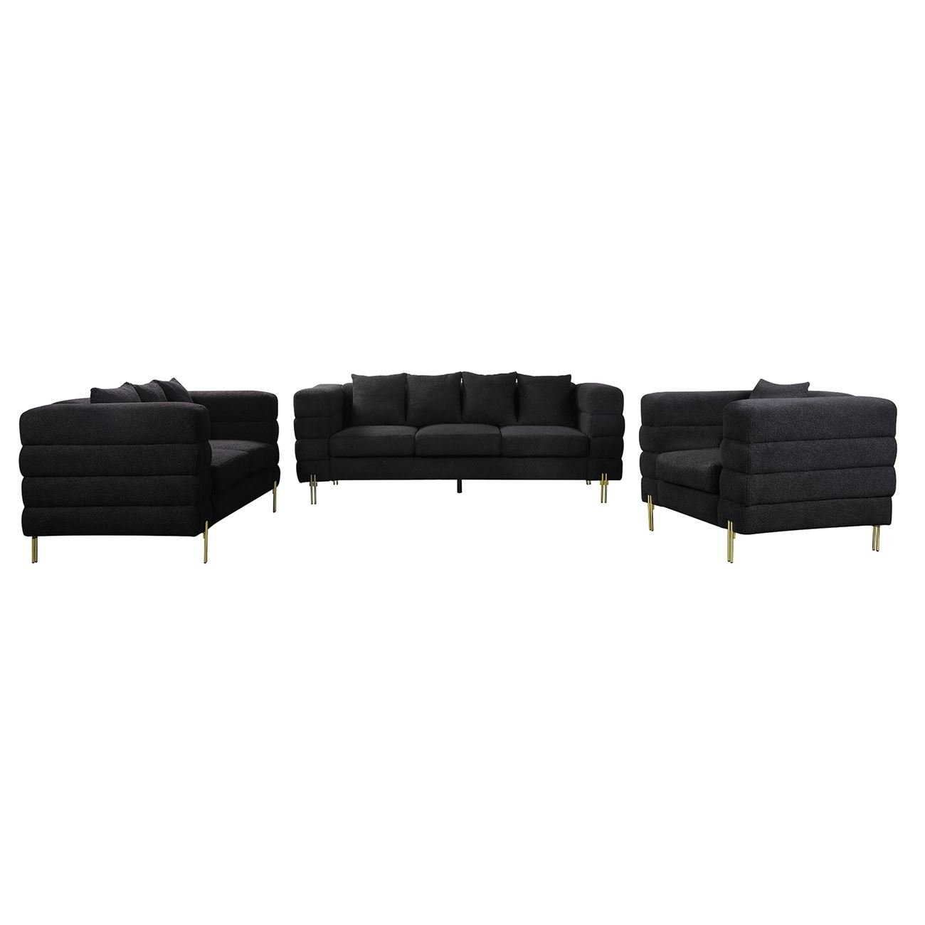 MORRIS Set Σαλόνι – Καθιστικό 3θέσιος + 2θέσιος + Πολυθρόνα Ύφασμα Teddy Μαύρο Set: 3Seater+2Seater+1Seater
