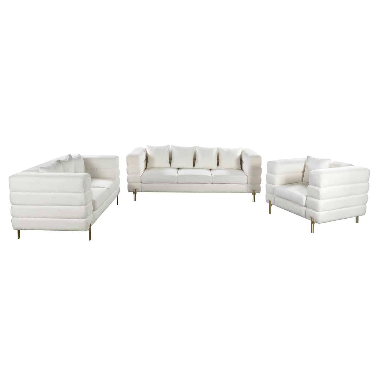 MORRIS Set Σαλόνι – Καθιστικό 3θέσιος + 2θέσιος + Πολυθρόνα Ύφασμα Teddy Άσπρο Set: 3Seater+2Seater+1Seater