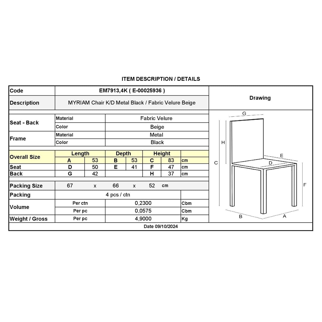 ΕΜ7913,4Κ MYRIAM Καρέκλα K/D Μέταλ.Μαύρο/Ύφασμα Velure Camel (Συσκ.4)