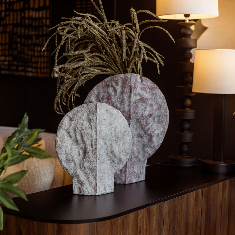 Τα κεραμικά βάζα Myrti, σε γκρι απόχρωση, ξεχωρίζουν για τη φυσική τους υφή και τον ιδιαίτερο σχεδιασμό τους που θυμίζει οργανικές μορφές. Με την αισθητική τους που συνδυάζουν τη μοντέρνα απλότητα με τη φυσική κομψότητα, τα βάζα Myrti αποτελούν ιδανική επιλογή για διακόσμηση σύγχρονων χώρων, προσθέτοντας μια διακριτική αλλά εντυπωσιακή πινελιά. Αποκλειστικά διακοσμητική χρήση – δεν ενδείκνυται η χρήση νερού.