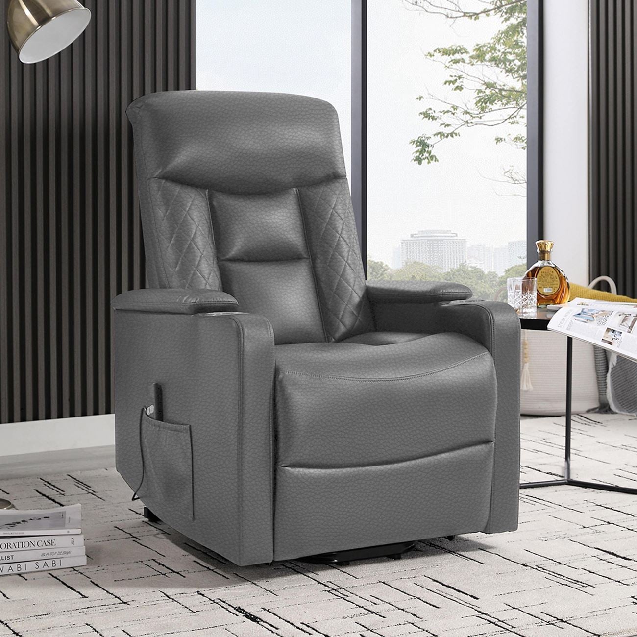 NANCY Lift-Relax Πολυθρόνα Σαλονιού – Καθιστικού, Ύφασμα Σκ.Γκρι (ηλεκτρική ανάκληση) 77x94x109cm