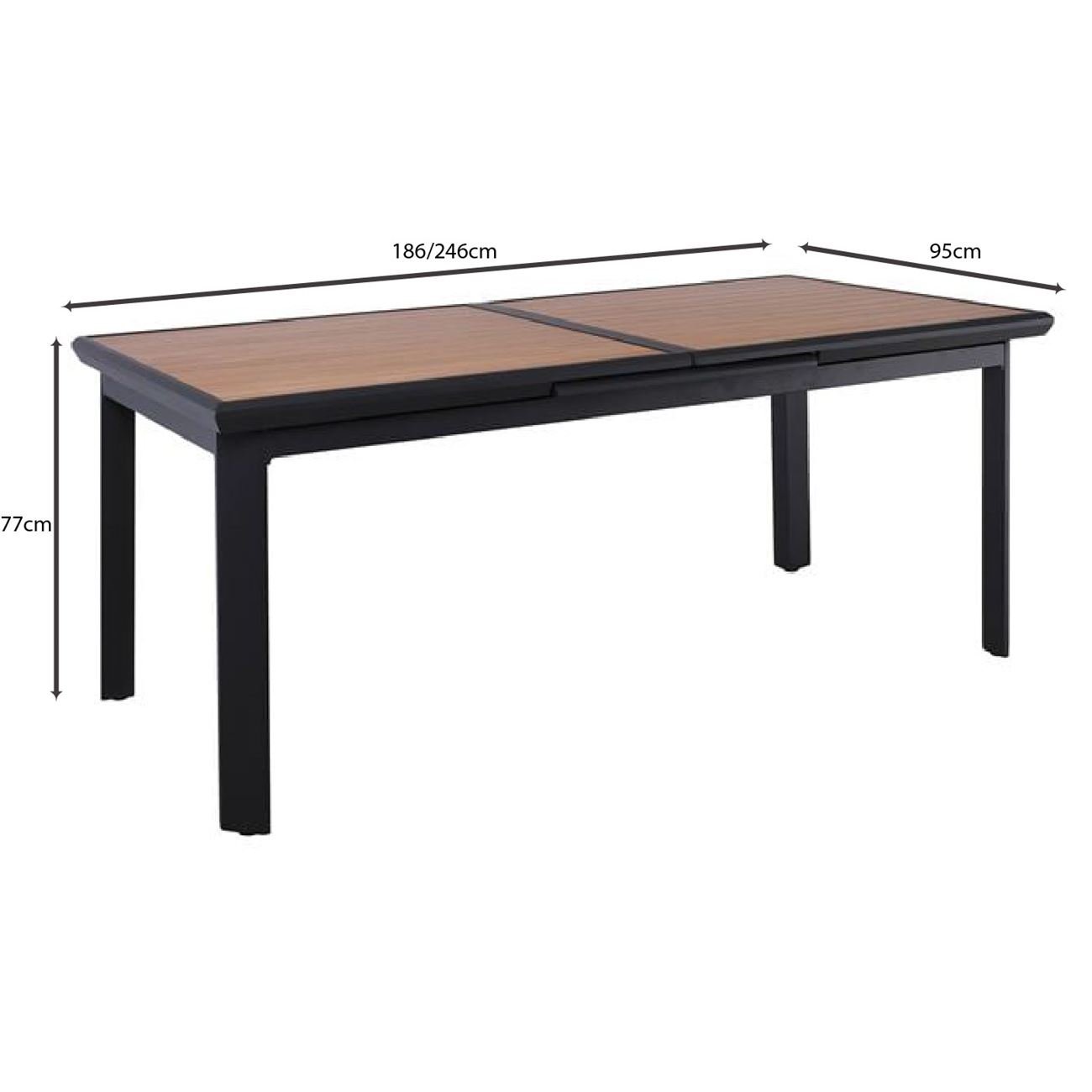 NAPOLI Τραπέζι Dining Κήπου- Βεράντας, Αλουμίνιο Βαφή Μαύρο Επιφάνεια Alu απόχρωσης Ξύλου 186+60x95cm H.77cm