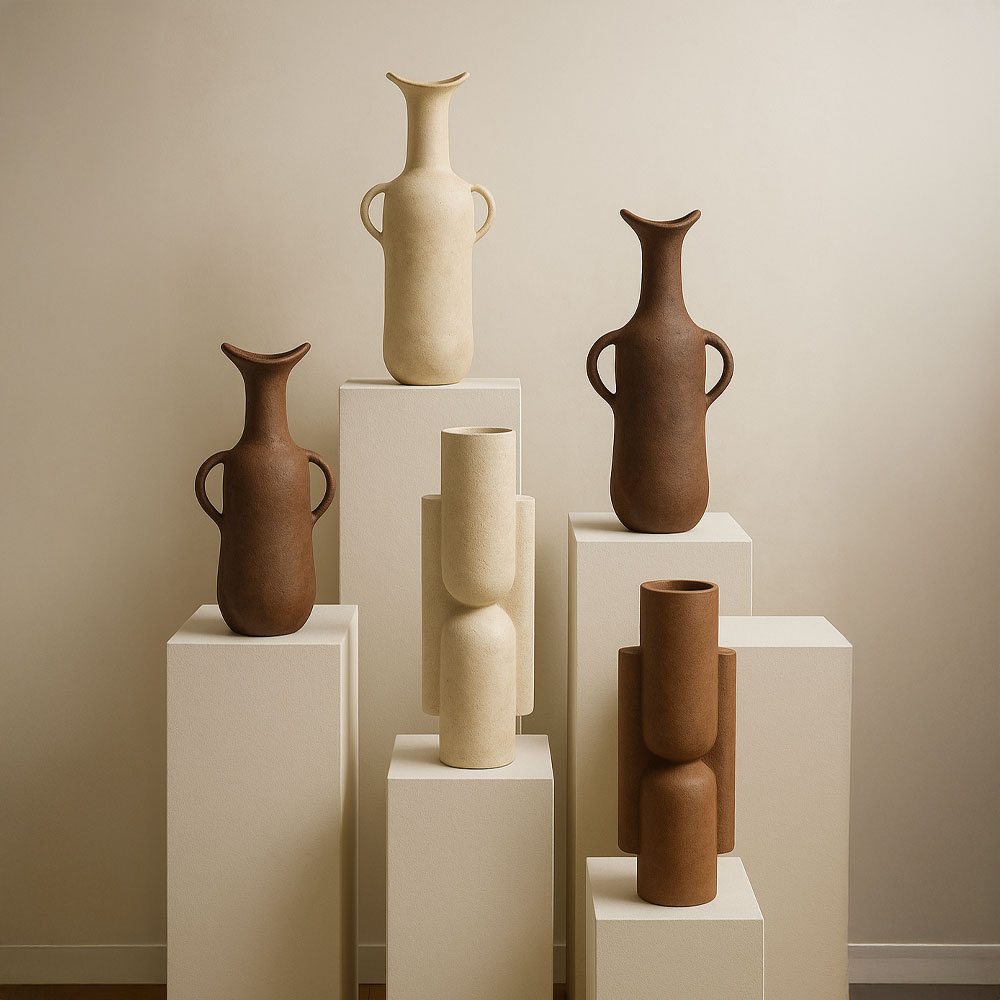Με ύψος 44 cm και λεπτές αναλογίες 13?10 cm, τοποθετείται ιδανικά σε κονσόλες, μπουφέδες ή στο δάπεδο δίπλα σε έπιπλα, είτε μόνο του είτε με λίγα διακριτικά κλαδιά. Ταιριάζει ιδιαίτερα σε γήινες, minimal ή elegant διακοσμήσεις, προσθέτοντας ύψος και διακριτική κομψότητα.