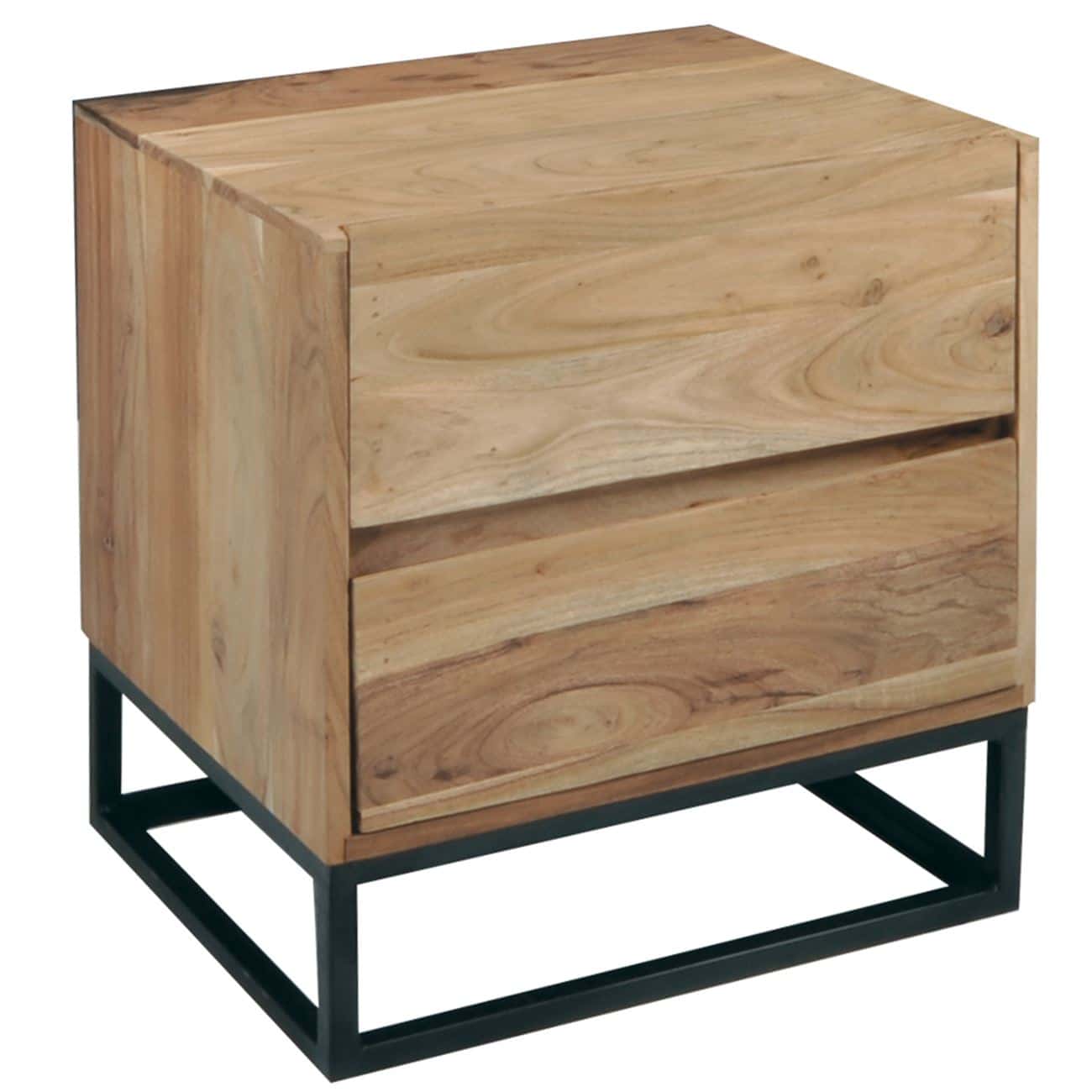 ΕΑ7016 NEPAL Κομοδίνο 50x40x55cm Ακακία Φυσικό/Μεταλ.Μαύρο