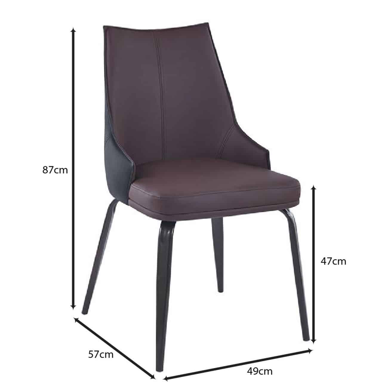 NORA Καρέκλα Τραπεζαρίας- Κουζίνας, Μέταλλο Βαφή Μαύρο, Pu Σκούρο Καφέ-Μαύρο 49x57x87cm