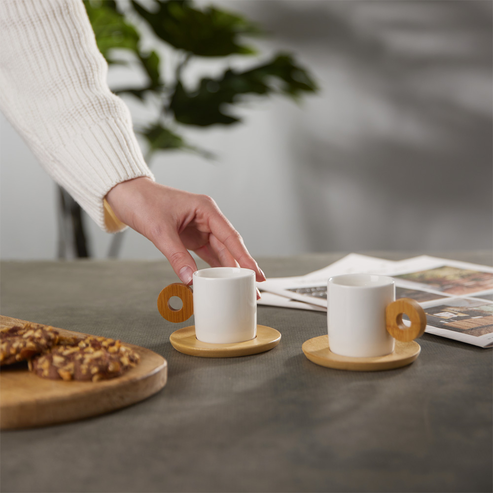 To ΣΕΤ περιλαμβάνει 2τμχ φλυτζάνια espresso 90ml και 2τμχ bamboo πιατακια. Δεν επιτρέπεται η χρήση πλυντηρίου πιάτων και microwave.
