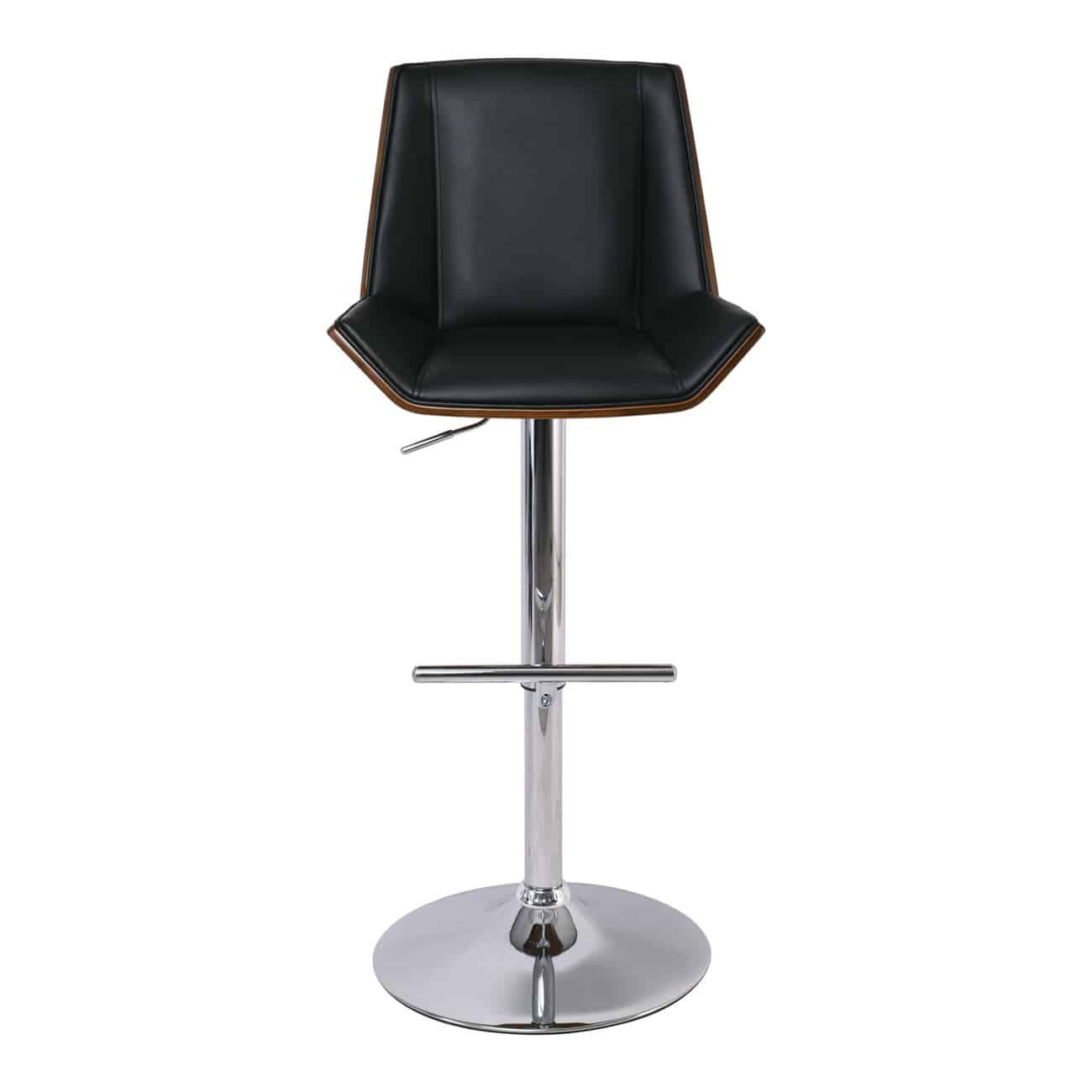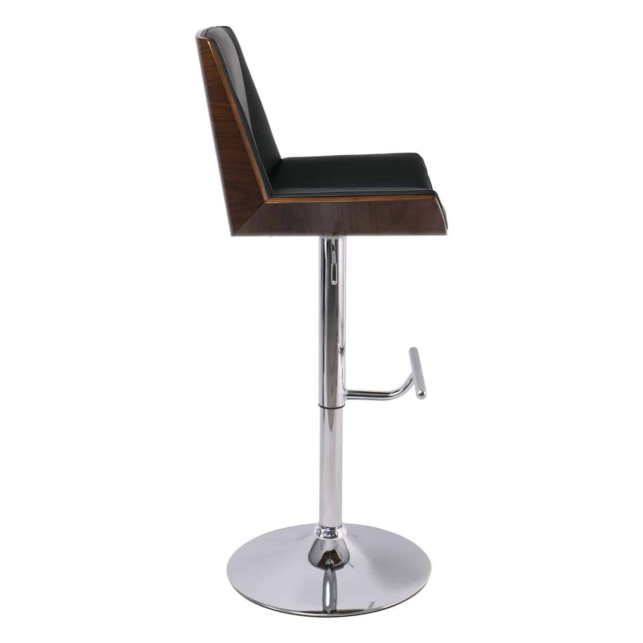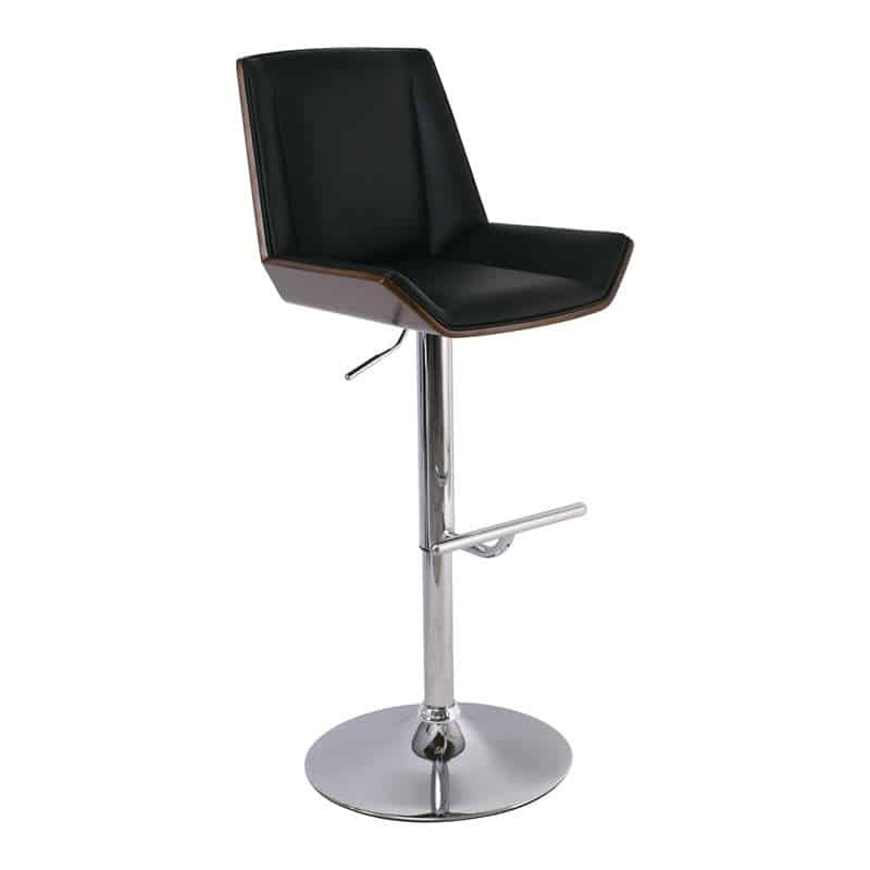 NUMAN Σκαμπό BAR με Πλάτη, Χρώμιο, Καρυδί – ΡU Μαύρο, Ρύθμιση Ύψους, Περιστρεφόμενο (Ε-00021095)