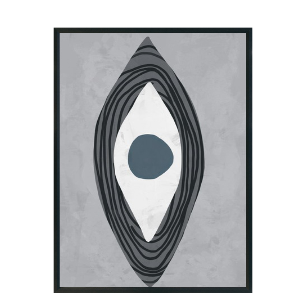 Ο πίνακας OEIL παρουσιάζει μια αφαιρετική μορφή ματιού σε αποχρώσεις γκρι και μαύρου, δημιουργώντας μια minimal αλλά έντονα συμβολική σύνθεση. Η γεωμετρική συμμετρία και οι καθαρές γραμμές προσφέρουν μοντέρνα, αρχιτεκτονική αισθητική. Ο καμβάς σε συνδυασμό με τη μαύρη κορνίζα δίνουν στιβαρότητα και refined παρουσία στο έργο. Ένας πίνακας ιδανικός για γραφεία, εισόδους και contemporary σαλόνια με έντονη design ταυτότητα.