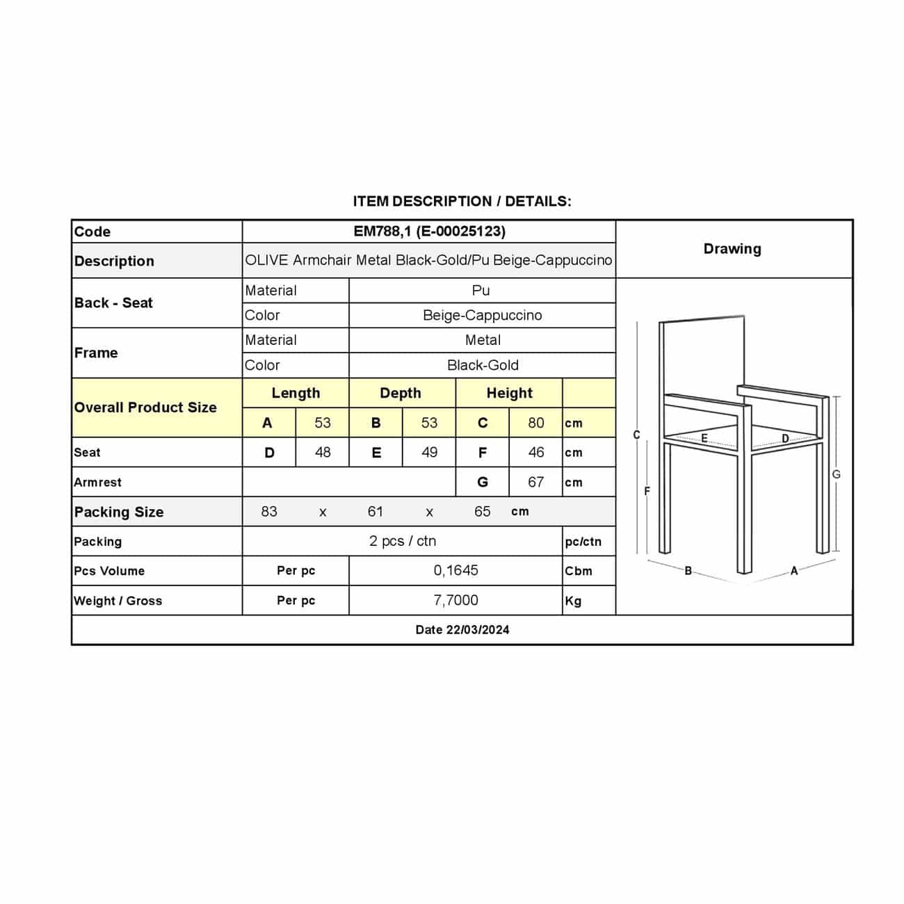 OLIVE Πολυθρόνα Μέταλλο Βαφή Μαύρο-Gold, Pu Μπεζ-Cappuccino (Ε-00025123)