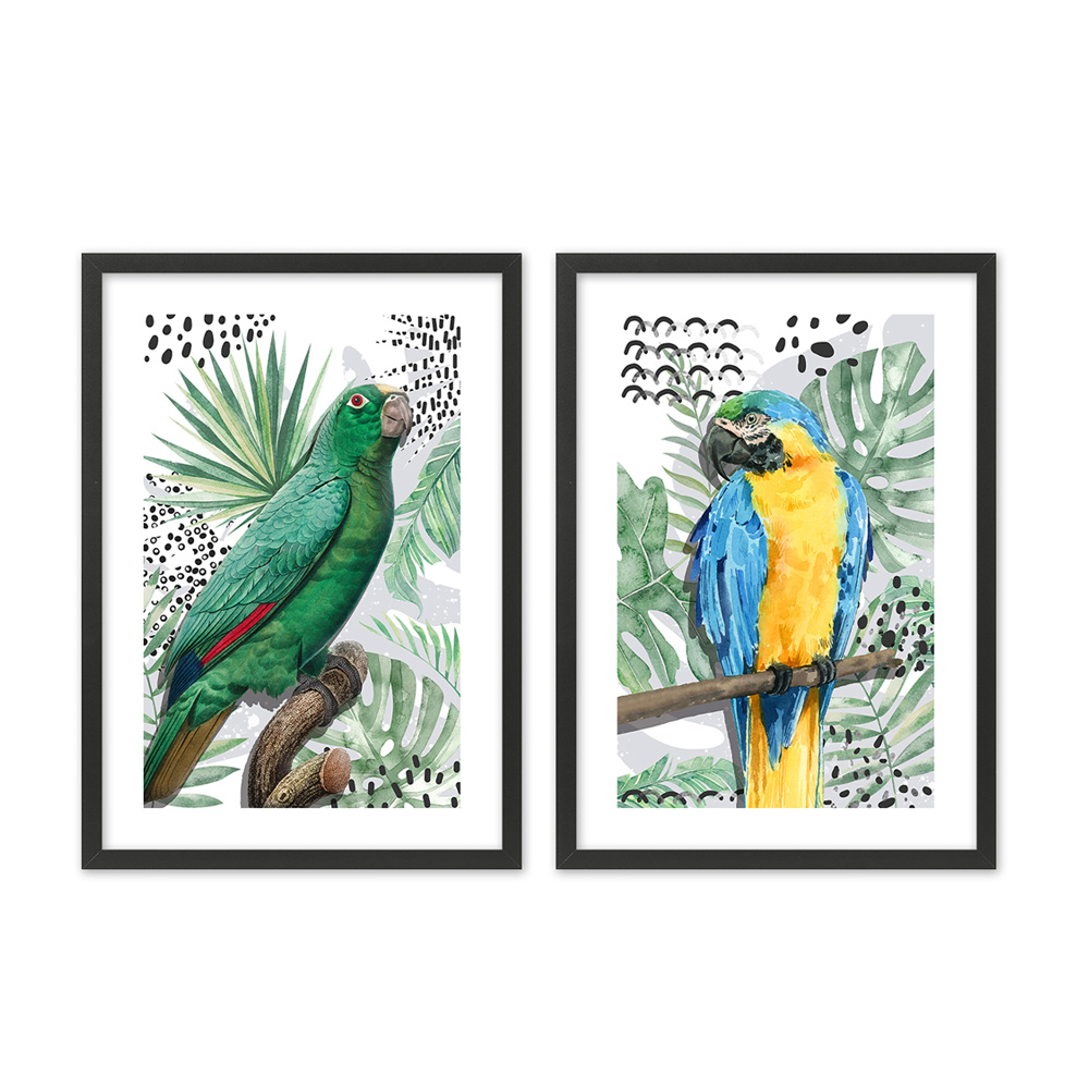 Το σετ πινάκων OMU παρουσιάζει δύο εντυπωσιακά πουλιά σε ζωηρούς τόνους τιρκουάζ, κίτρινου και πράσινου, δημιουργώντας μια χαρούμενη και εξωτική αισθητική. Οι λεπτομερείς εικονογραφήσεις θυμίζουν vintage naturalist art, ενώ η μαύρη κορνίζα δίνει μοντέρνο, καθαρό τελείωμα. Το MDF και η εκτύπωση υψηλής ποιότητας εξασφαλίζουν ανθεκτικότητα. Ιδανικό για σαλόνια, γραφεία και boho–exotic διακοσμήσεις.