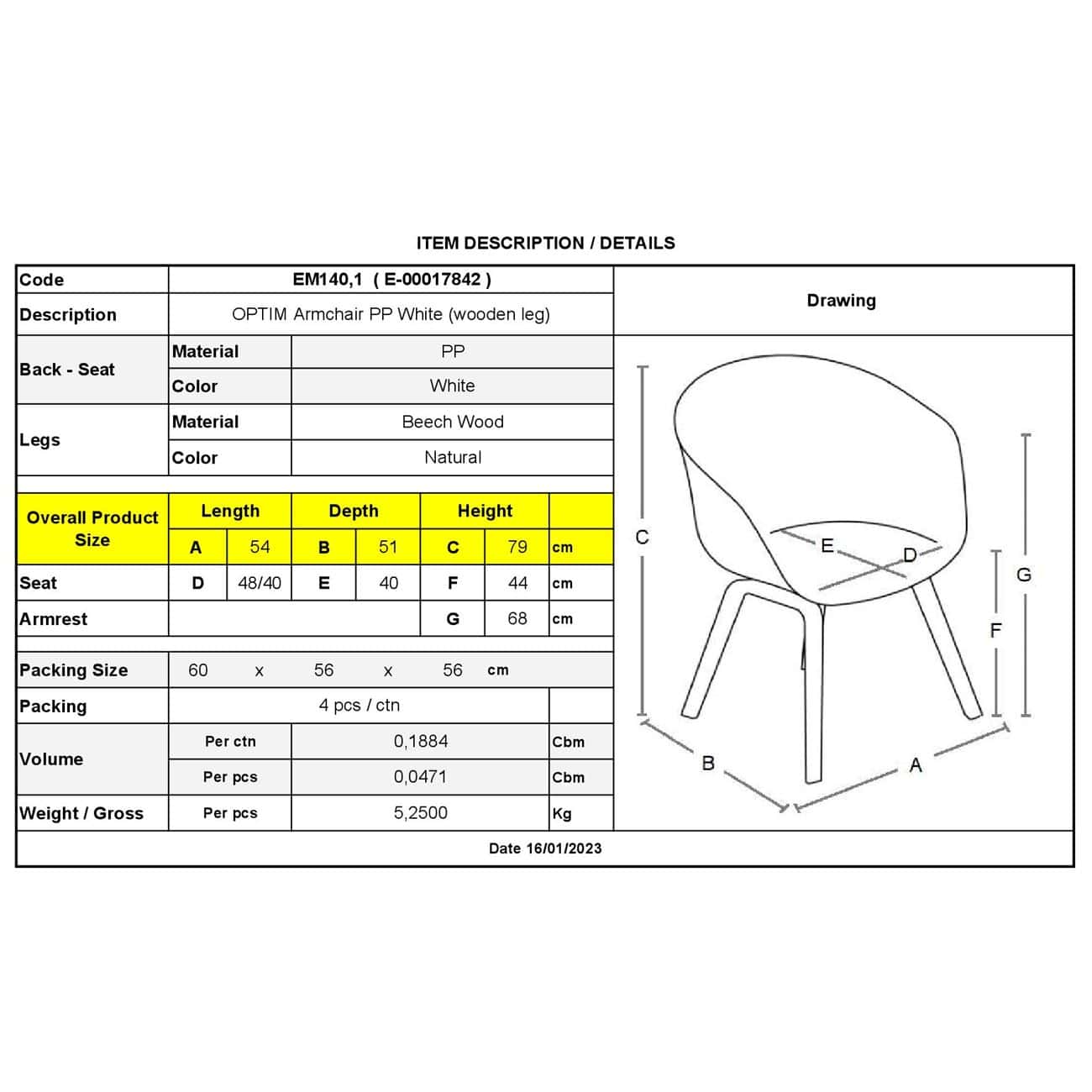 OPTIM Πολυθρόνα Ξύλινο Πόδι Οξιά Φυσικό, PP Άσπρο  (Ε-00017842)
