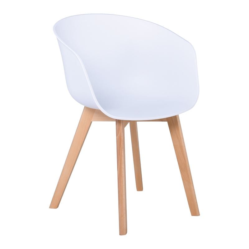 OPTIM Πολυθρόνα Ξύλινο Πόδι Οξιά Φυσικό, PP Άσπρο 54x51x79cm