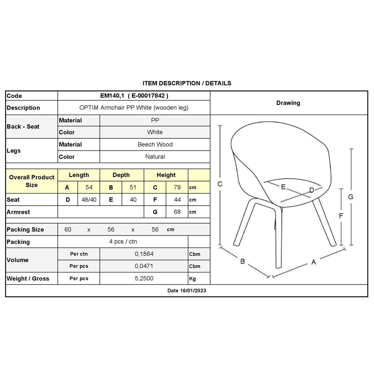 ΕΜ140,1 OPTIM Πολυθρόνα PP Άσπρο (Ξύλινο πόδι)