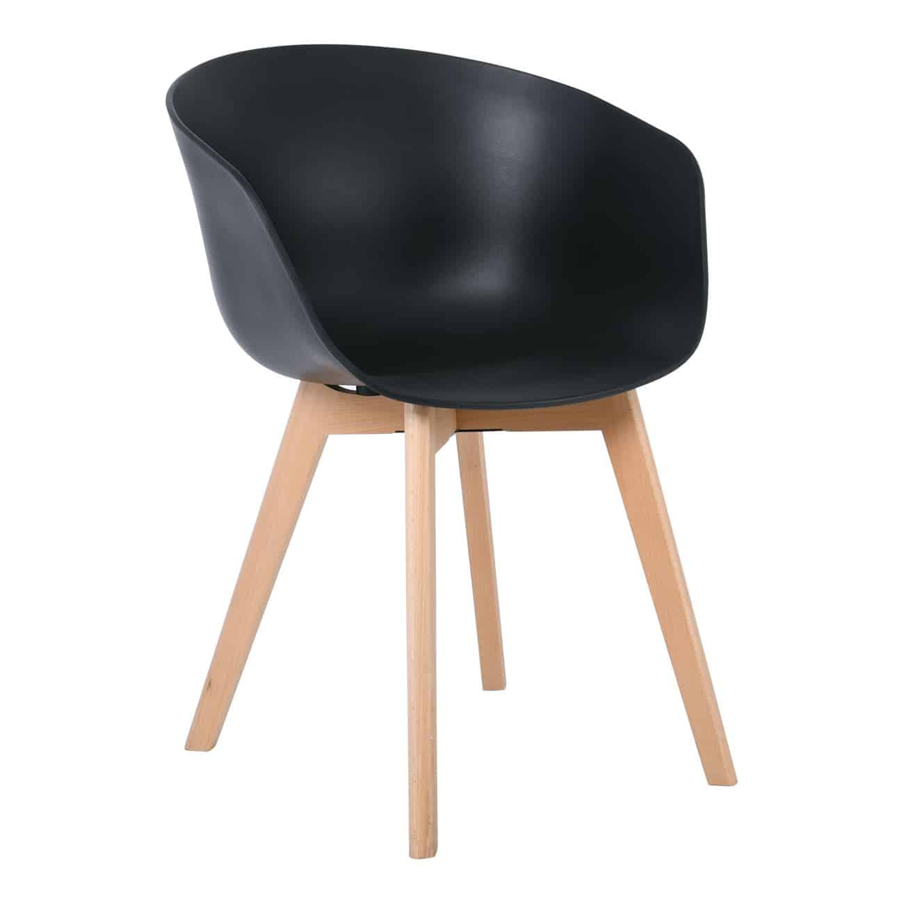 OPTIM Πολυθρόνα Ξύλινο Πόδι Οξιά Φυσικό, PP Μαύρο 54x51x79cm