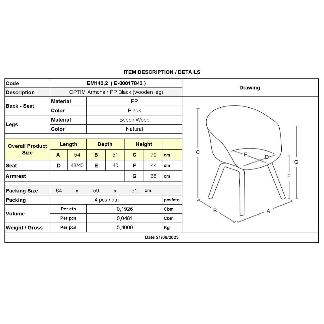 ΕΜ140,2 OPTIM Πολυθρόνα PP Μαύρο (Ξύλινο πόδι)