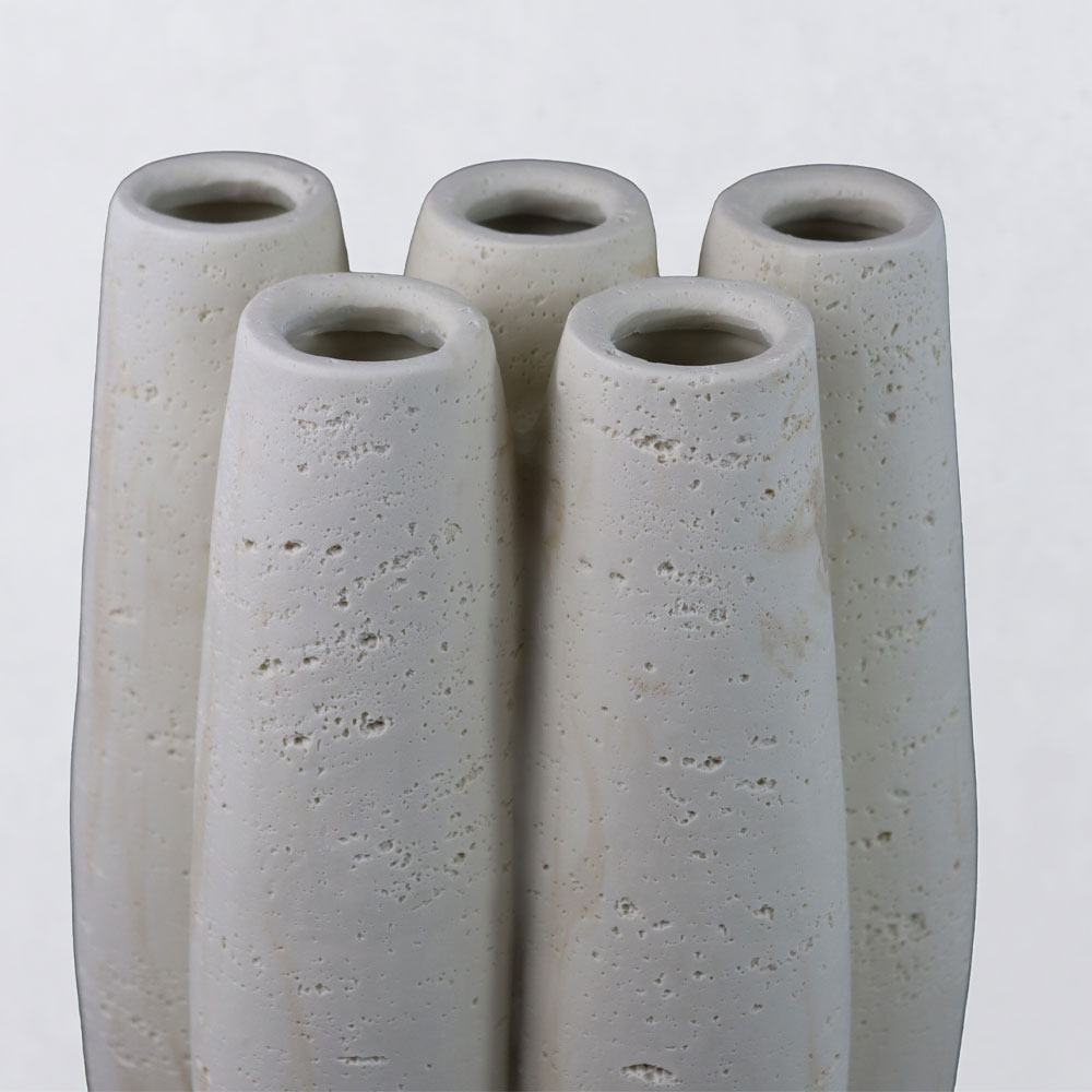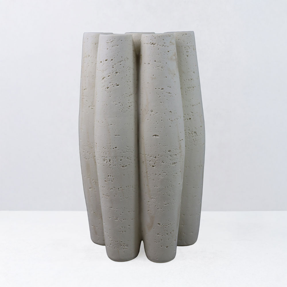 Το βάζο ORIN III ξεχωρίζει για την κάθετη, σμιλευμένη του φόρμα και τις απαλές αυλακώσεις που του δίνουν χαρακτήρα χωρίς ένταση. Η μπεζ απόχρωση και η ματ υφή του resin δημιουργούν μια ήρεμη, φυσική αίσθηση που ταιριάζει εύκολα σε διαφορετικά περιβάλλοντα.