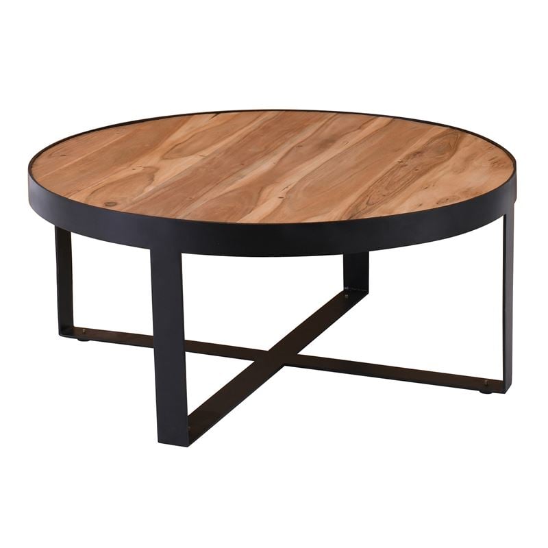 ΕΑ7010,W OVEN-W Τραπ.Σαλονιού Φ80x35cm Ακακία Φυσικό/Μεταλ.Μαύρο