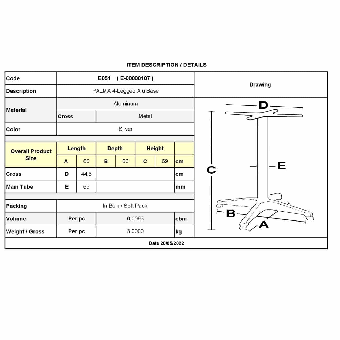Ε051 – PALMA Βάση 4-Νυχη Αλουμινίου (2,30kg)